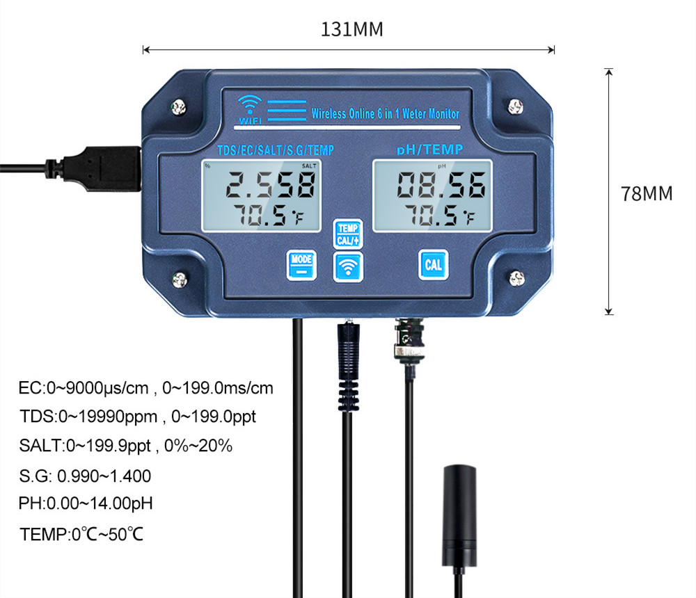 This product is professionally used to test the water quality of fish ponds, aquariums, drinking water, fish ponds, aquariums, fish tanks, hydroponics, and mariculture. With built-in Bluetooth connectivity, you can save, download and share PH/TDS/EC/Salinity/SG/Temperature recorded data by yourself. In addition, the product can be mounted on the wall with suction cups, so you don't need to hold it, which is more convenient.