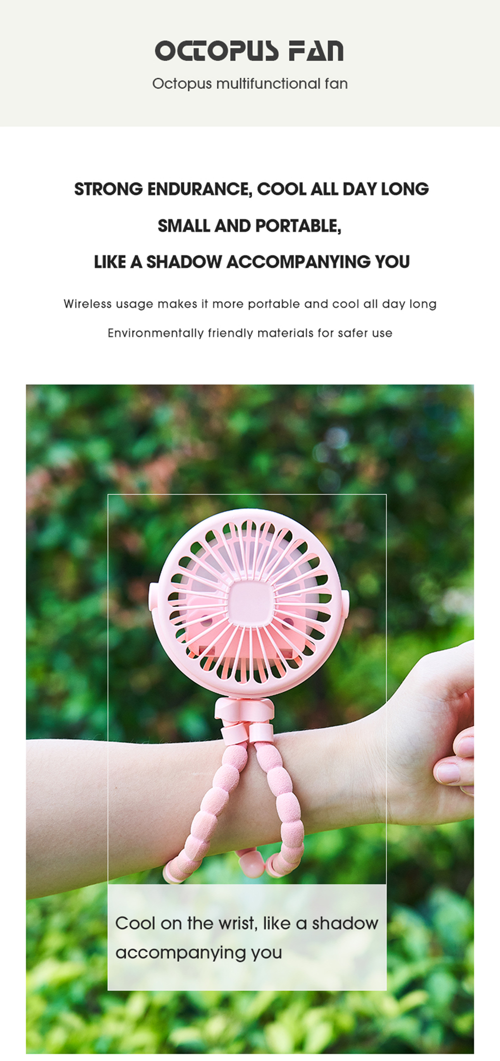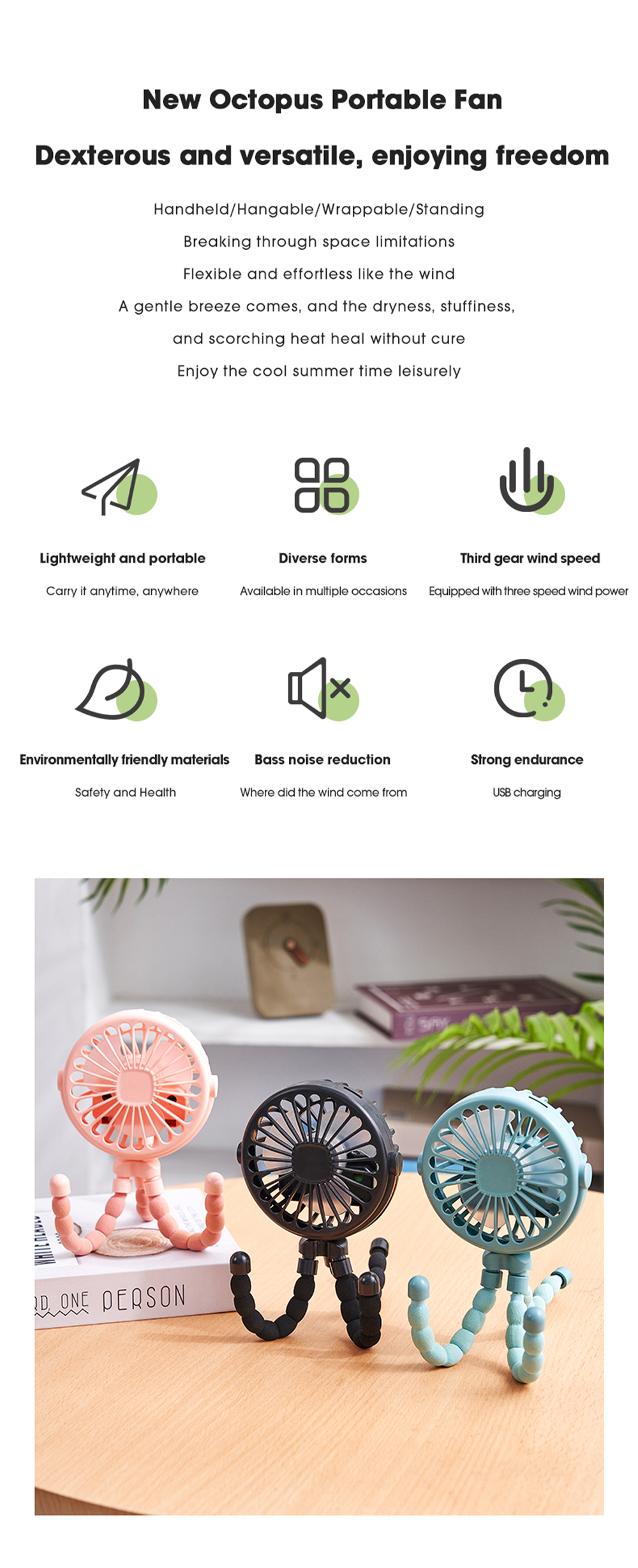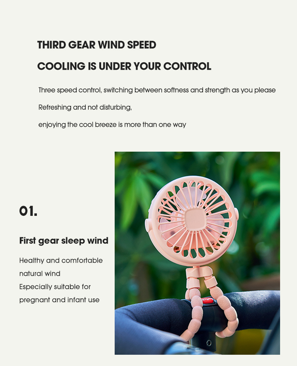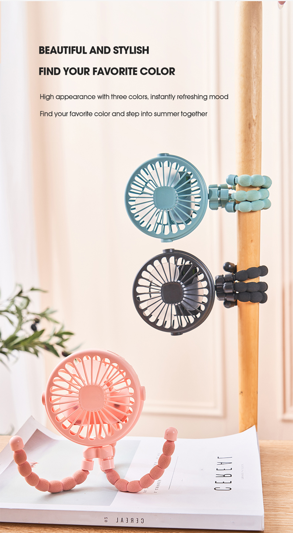 This versatile stroller mini fan is ideal for keeping your children safe and comfortable while cooling them down. The innovative octopus design is both cute and practical. Whether it's a walk outdoors or a stroll in the mall, it's the perfect companion for your kids.