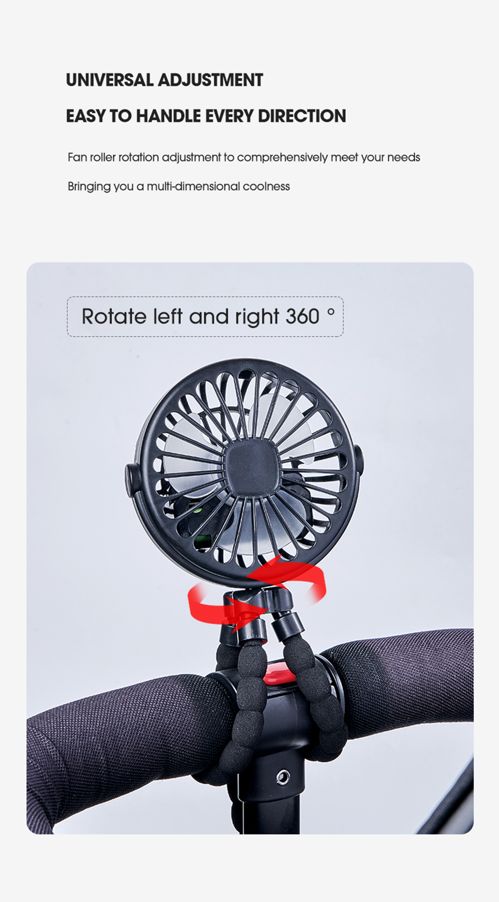 - Multi-directional adjustment: The fan holder rotates 360 degrees and can adjust the Angle and wind direction as needed to ensure that your child is always cool.