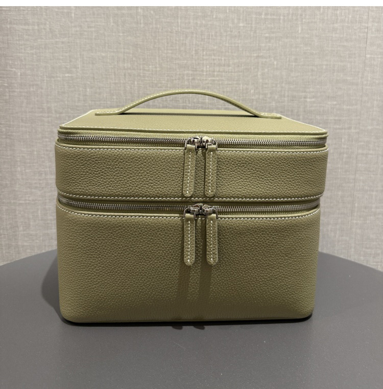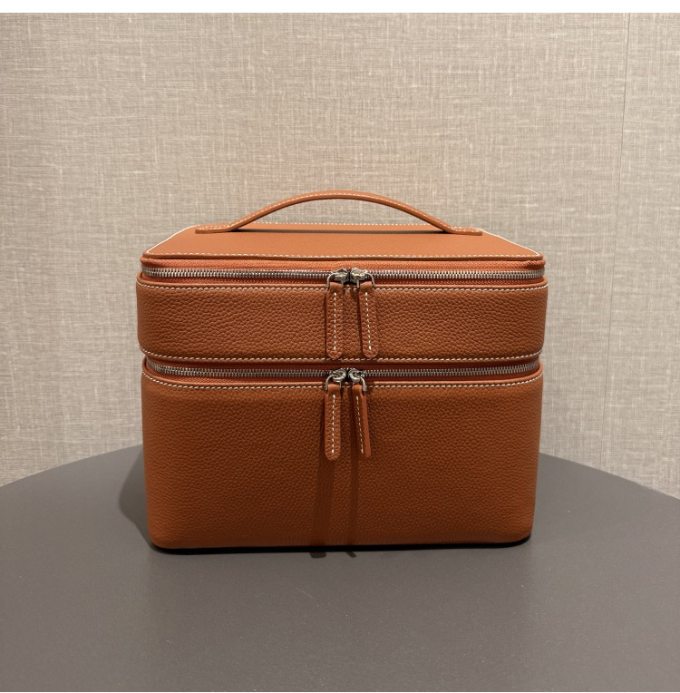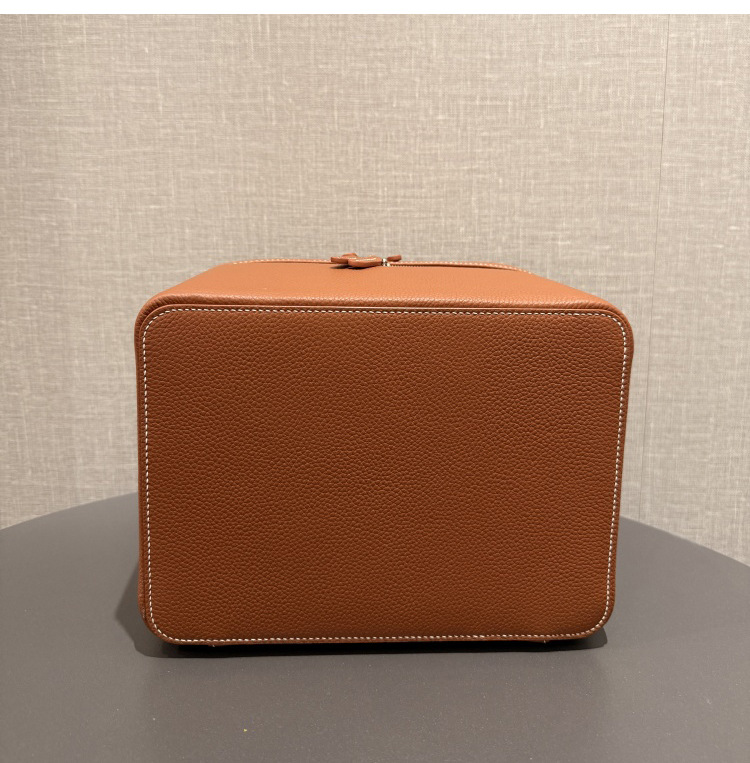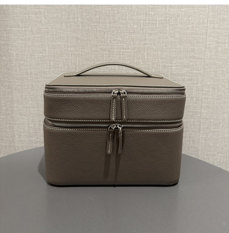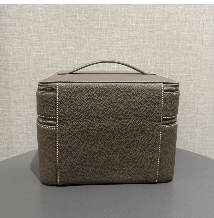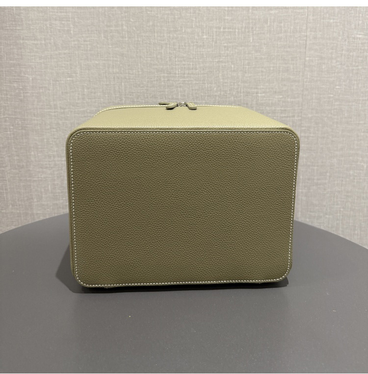 Trendy elements: Solid color, stitching, leather texture, soft tones