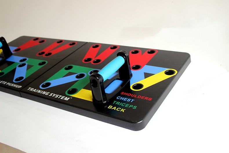 3. Different color combinations train different parts, red - shoulder, blue - chest, yellow - back, green - triceps