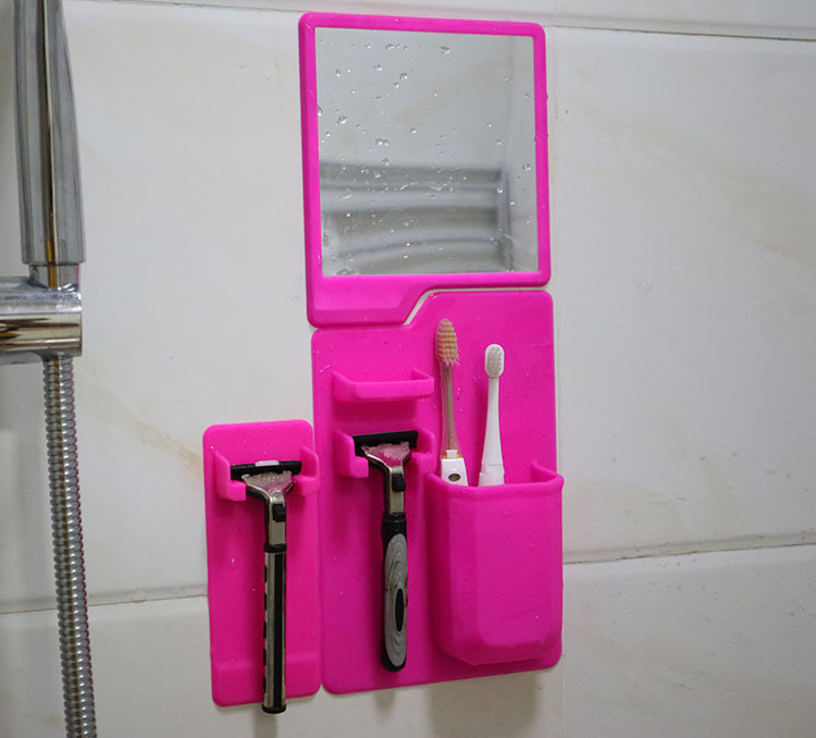 Multi-functional Silicone Toothbrush Holder Mighty Wall Mirror Suction Toothpaste Storage Holder Bathroom Organizer For Shower