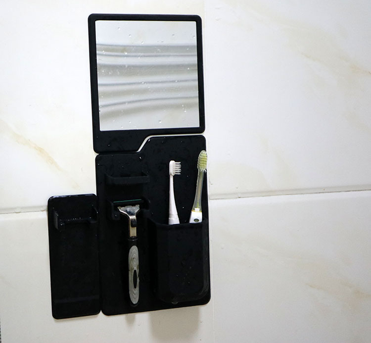Mighty Bathroom Organizer is not just a toothbrush holder, it's a space-saving design that keeps your bathroom accessories (razor, toothbrush, toothpaste) safe! It keeps your toothbrush hygienic, dry and clean. Perfect for every bathroom!