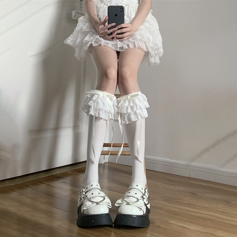 Color: multi-layer lace [white] velvet calf socks, multi-layer lace [beige] velvet calf socks, multi-layer lace [black] velvet calf socks, multi-layer lace [white] velvet knee high socks, multi-layer lace [beige] velvet knee high socks, multi-layer lace [black] velvet knee high socks,