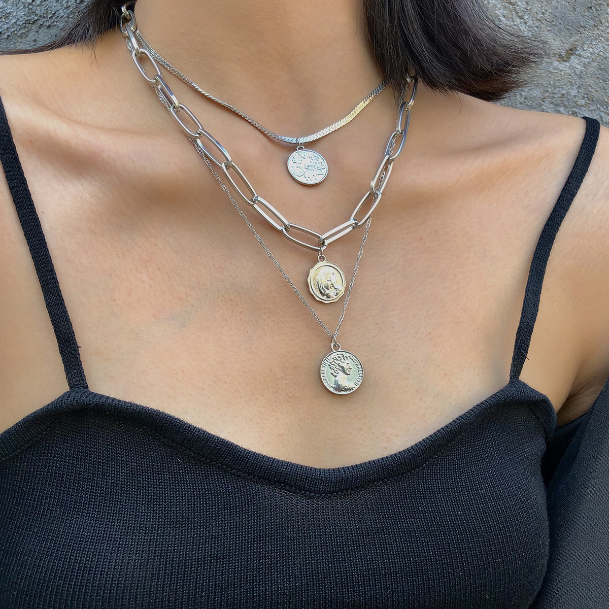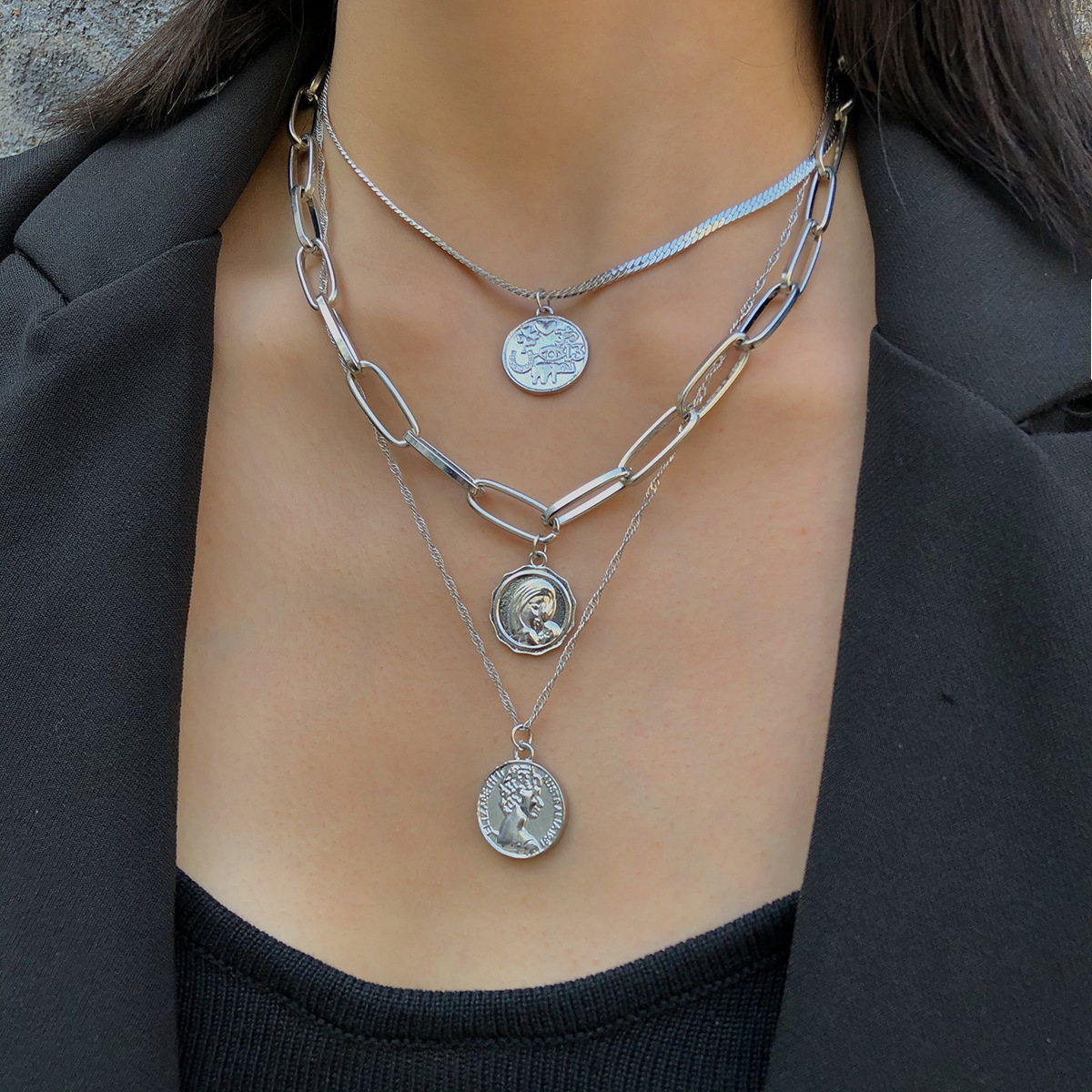 Multi-layer portrait sweater chain