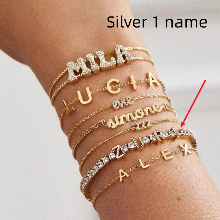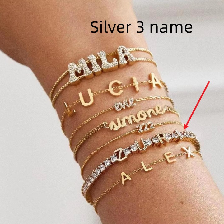 Product information:Material: stainless steelColor: silver, goldStyle: 1 name, 2 names, 3 namesPacking list:Bracelet *1