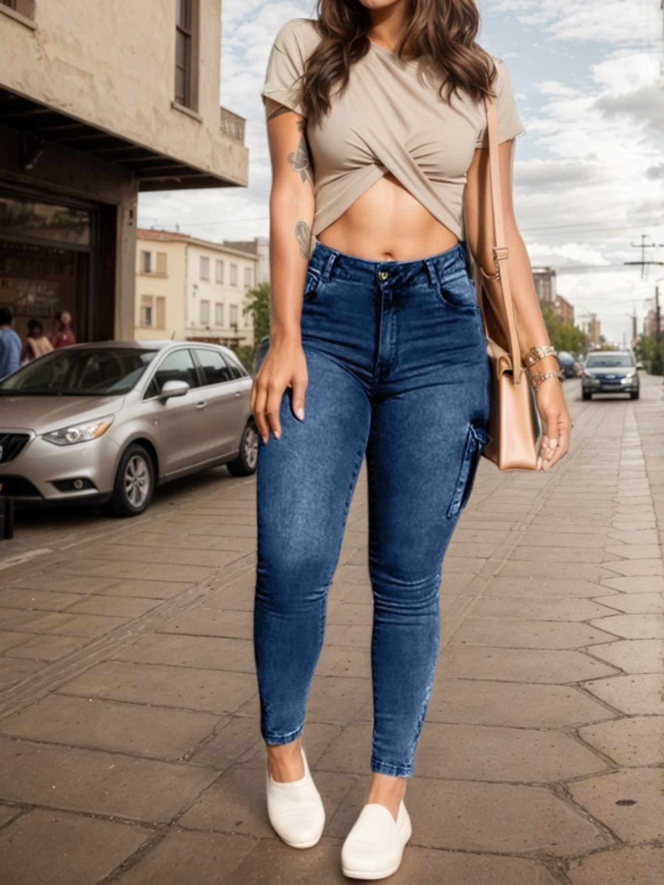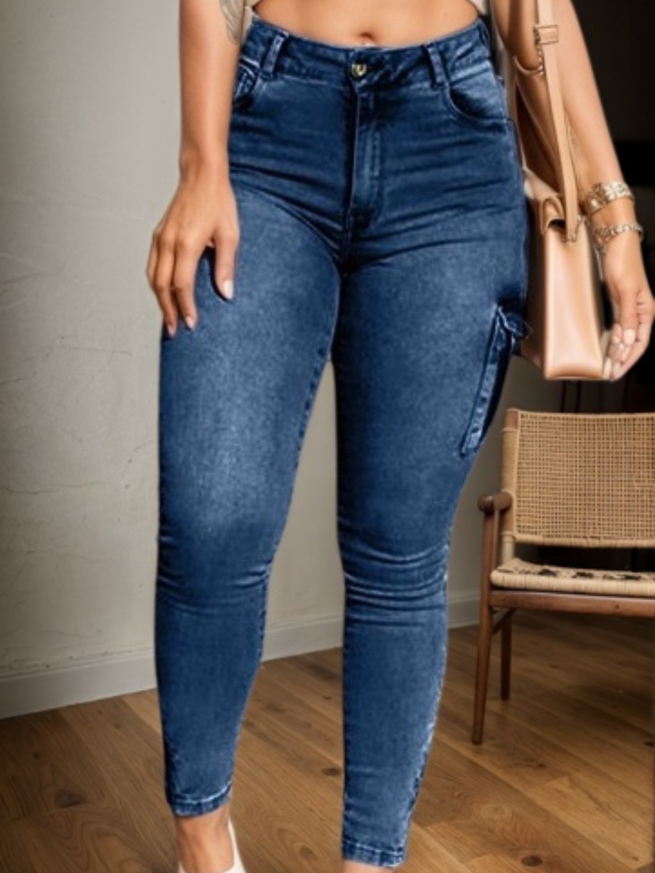 Multi-pocket High-stretch Mid-rise Zipper-hem Skinny Pencil Pants, Urban Style Women's Jeans And Clothing Cargo Jeans Amazon Don't Sell