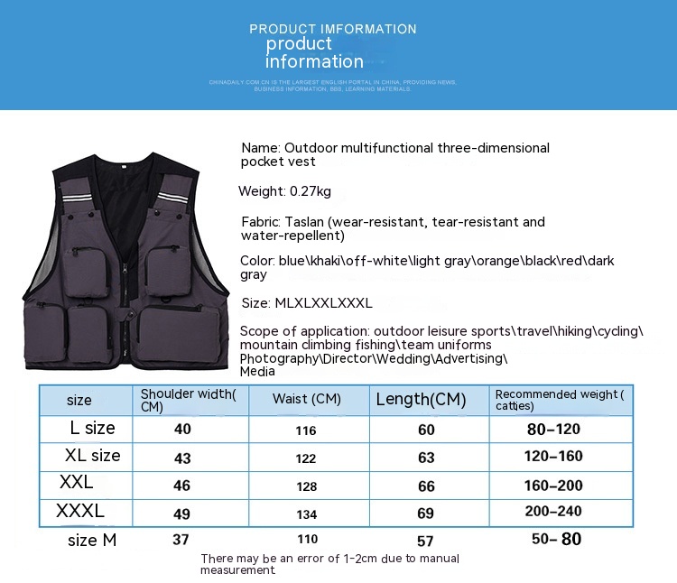 Multi-pocket Photography Vest Fishing Vest For Men And Women