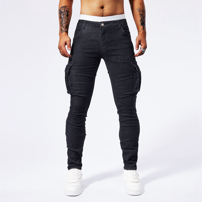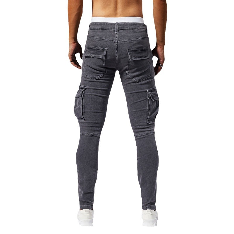 Multi-Pocket Workwear Jeans Men's Fashion Brand Stretch Slim Fit