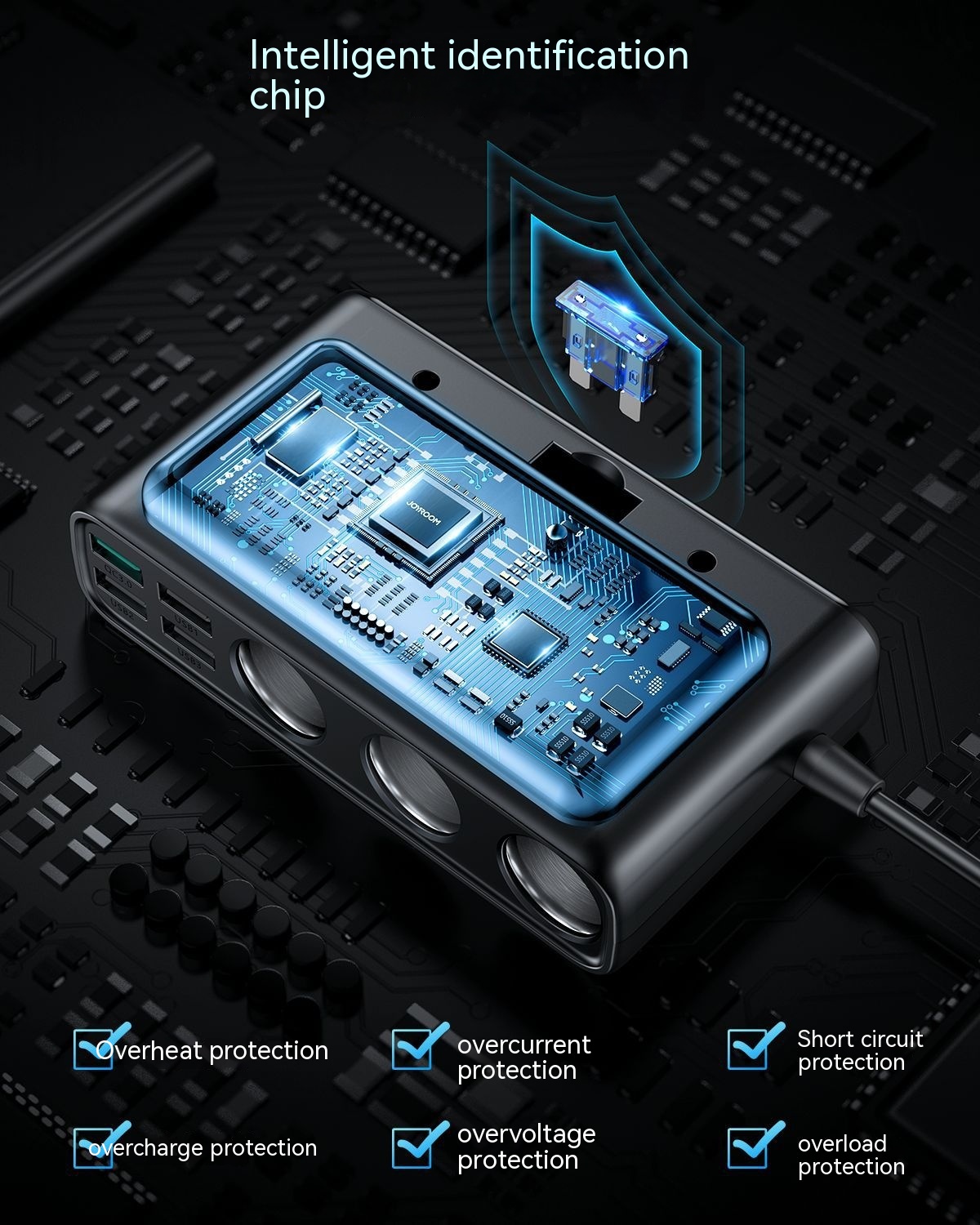 Front row product input: DC 12~24v QC3.0 output: 5V/2.4A 9V/2A 12V/1.5A PD output: 5V/3A 9V/2.22A 12V/1.67A total output: 38W