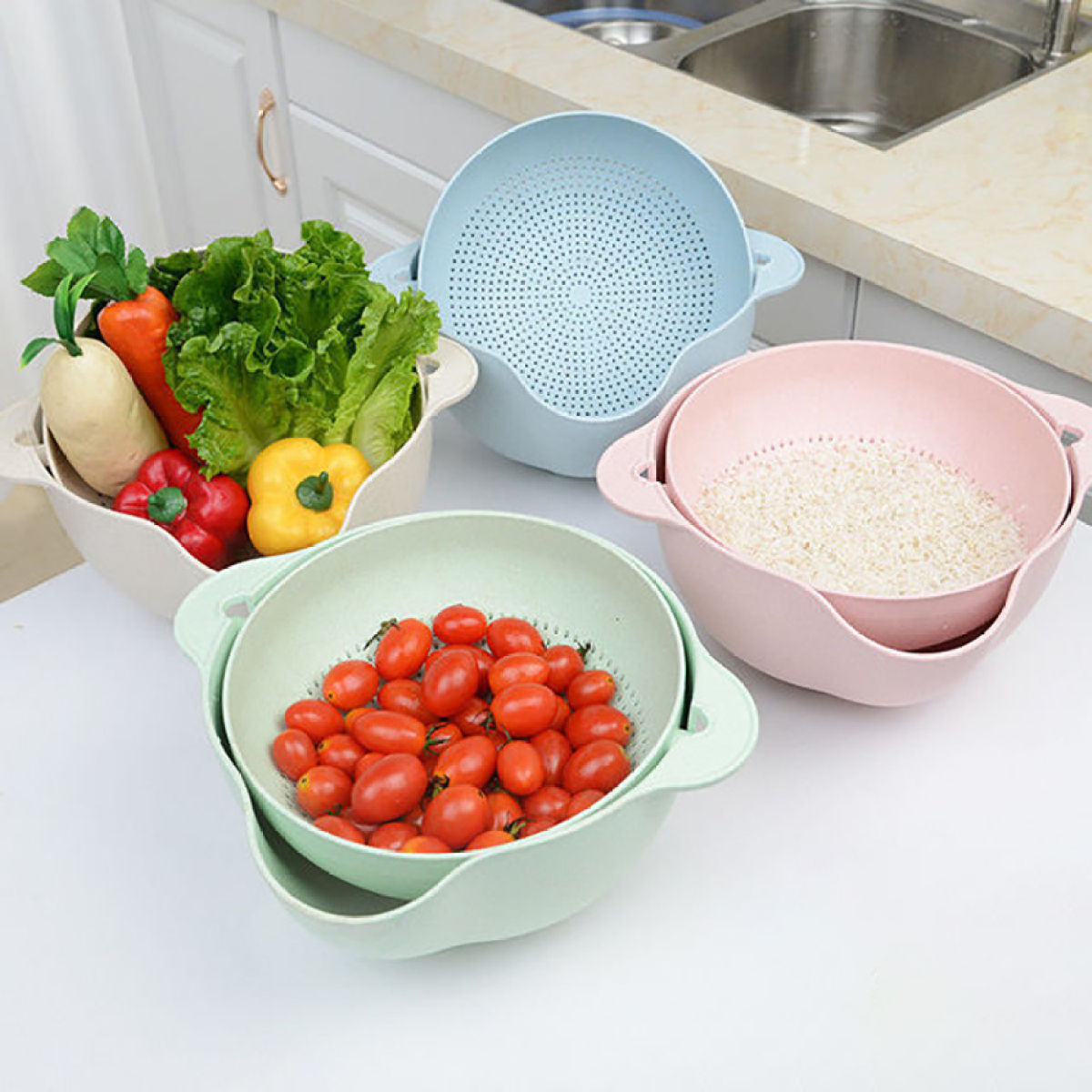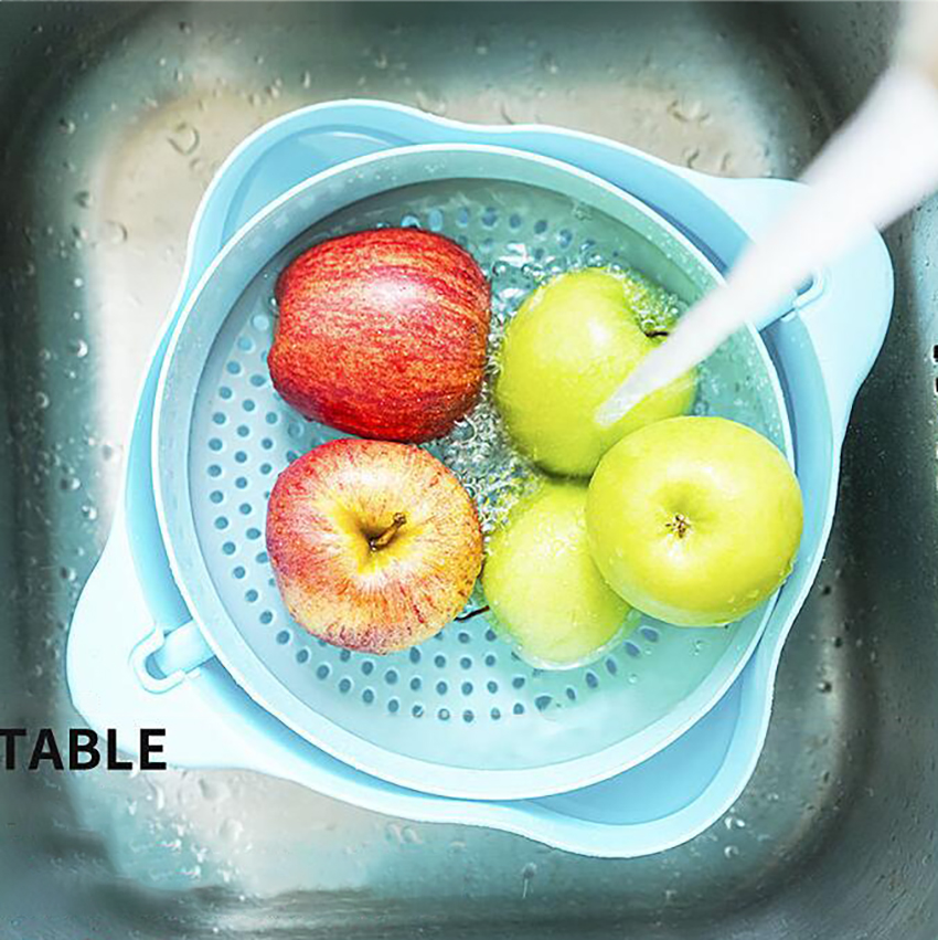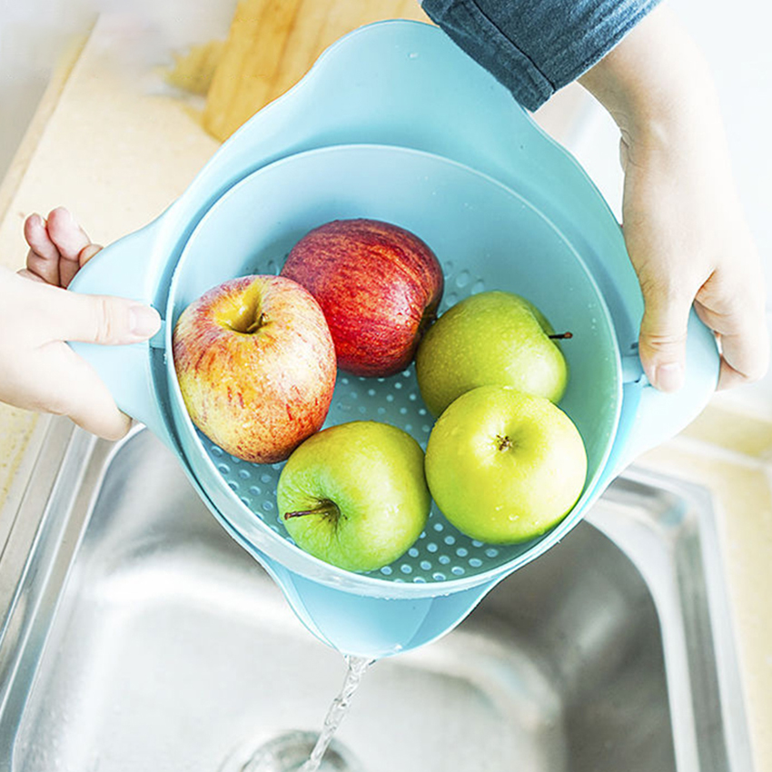 Double-layer hollow design: washing and draining fruits and vegetables in one step
