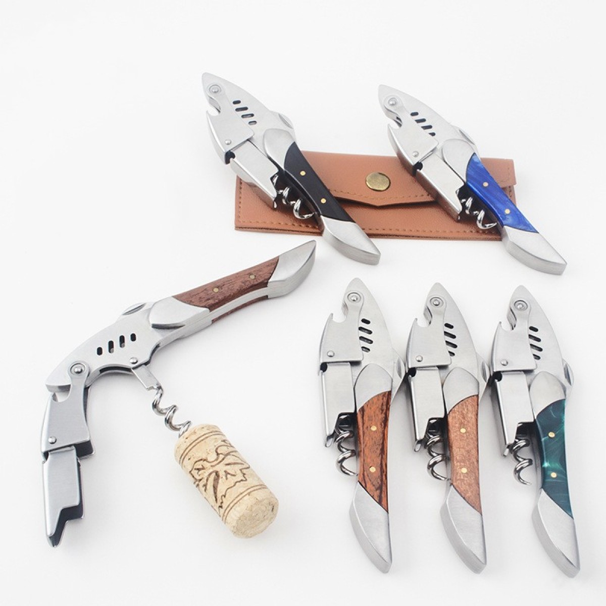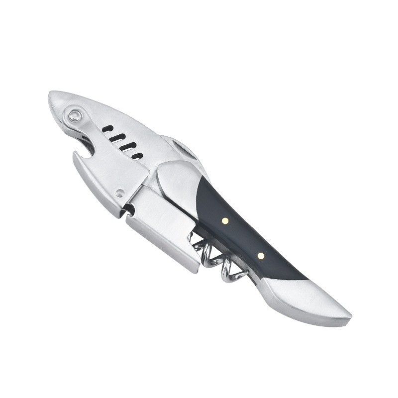 The multi-function bottle opener is an integrated device with multiple functions. It can open the wine stopper, beer cap, and also can be used to cut aluminum.
