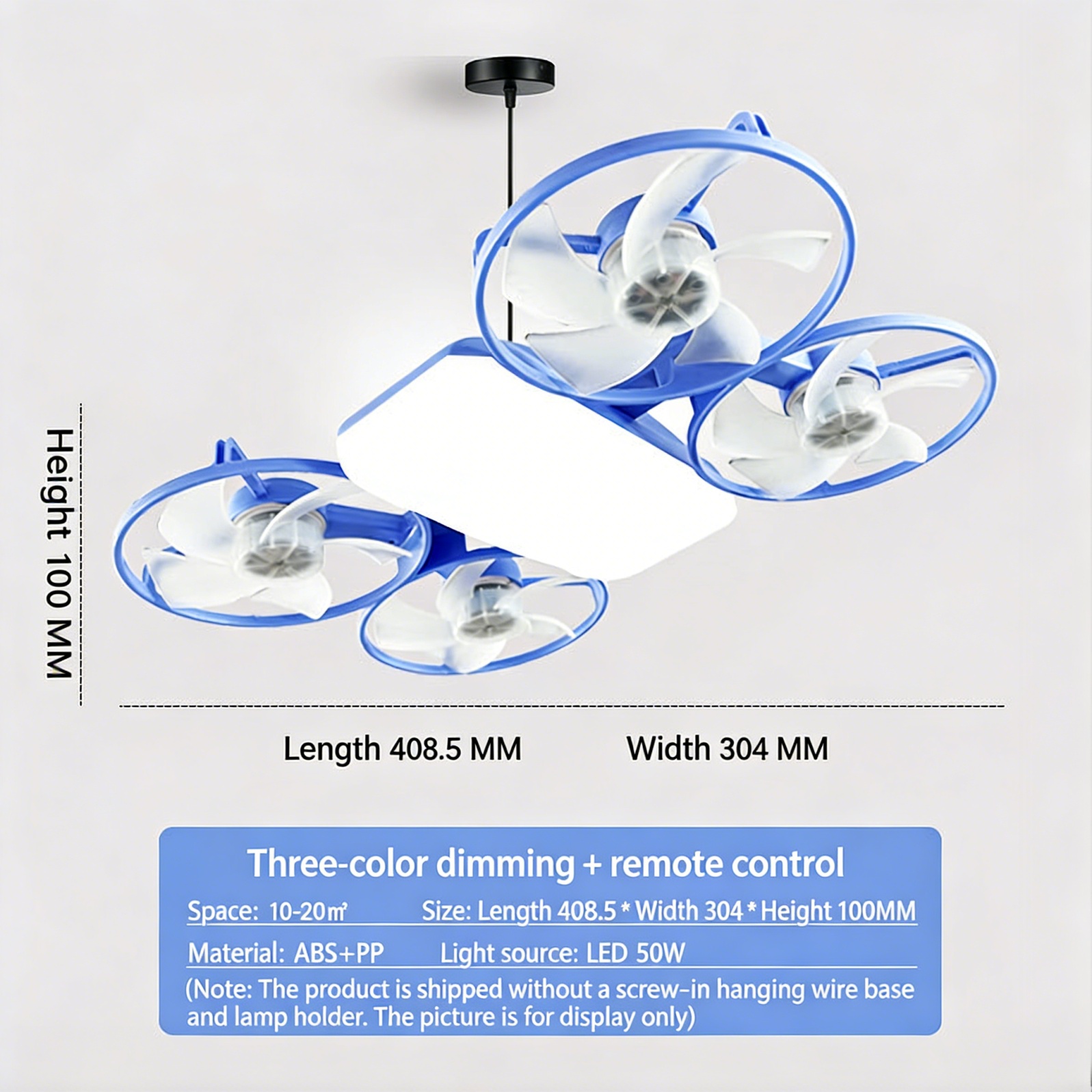 Blue Four-Blade High-Velocity Model (includes remote control and E27 lamp holder extension rod)