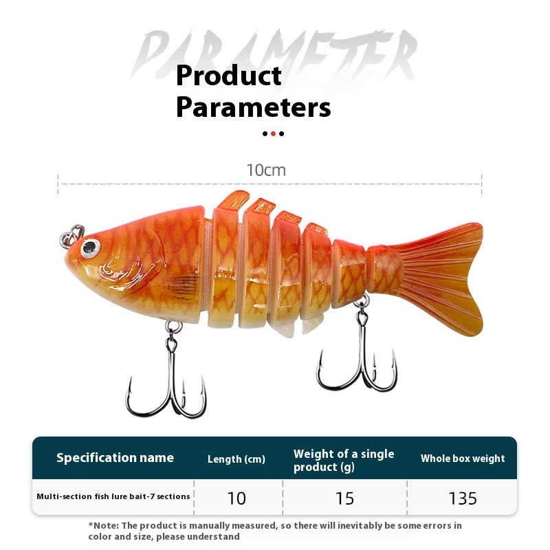 Product information:Color: 5 pcs/box Category: Bait Bait type: Multi-section bait Material: Metal plastic