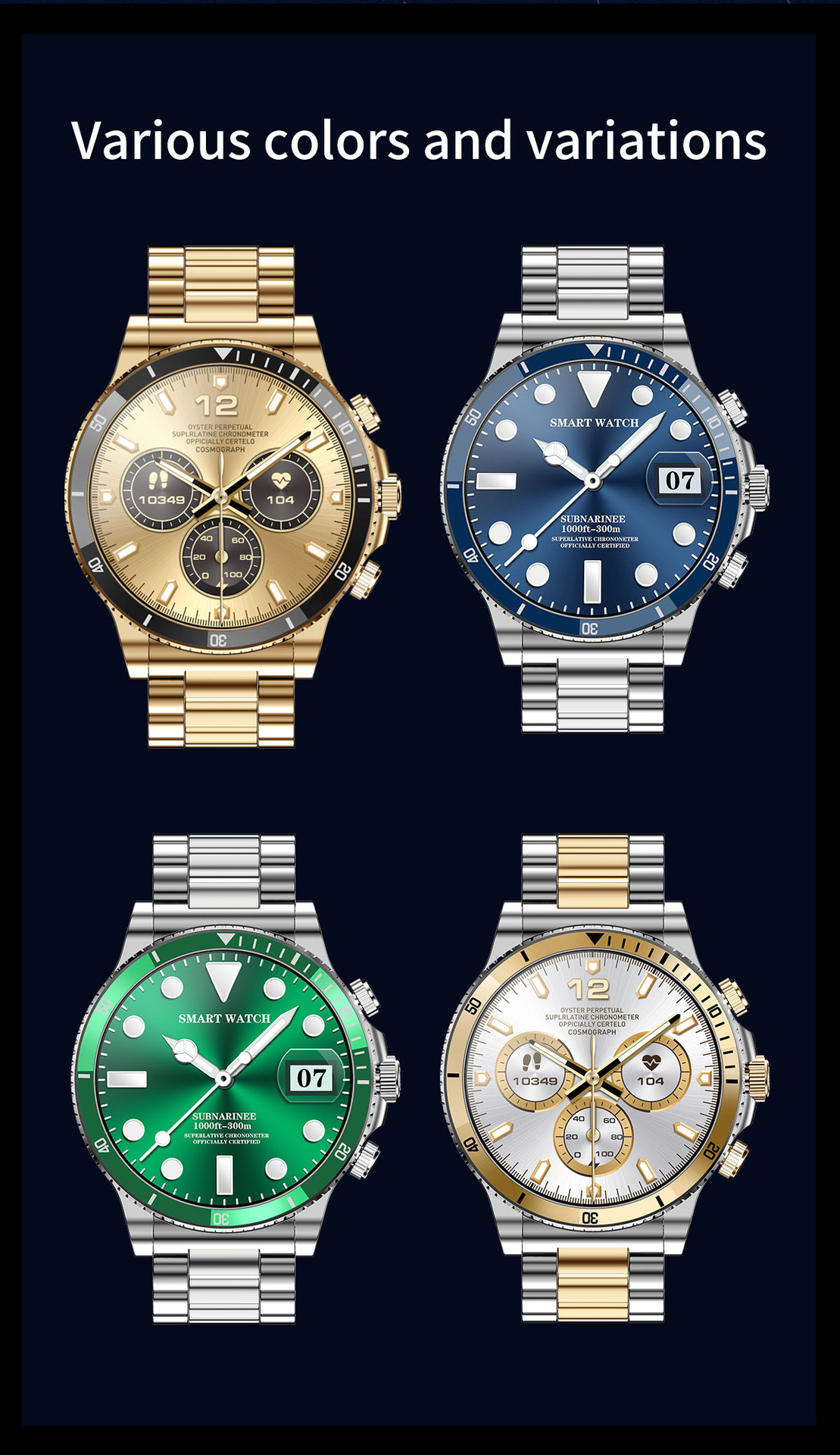 Color: Steel Belt Silver Blue, steel belt silver Green, steel belt full gold