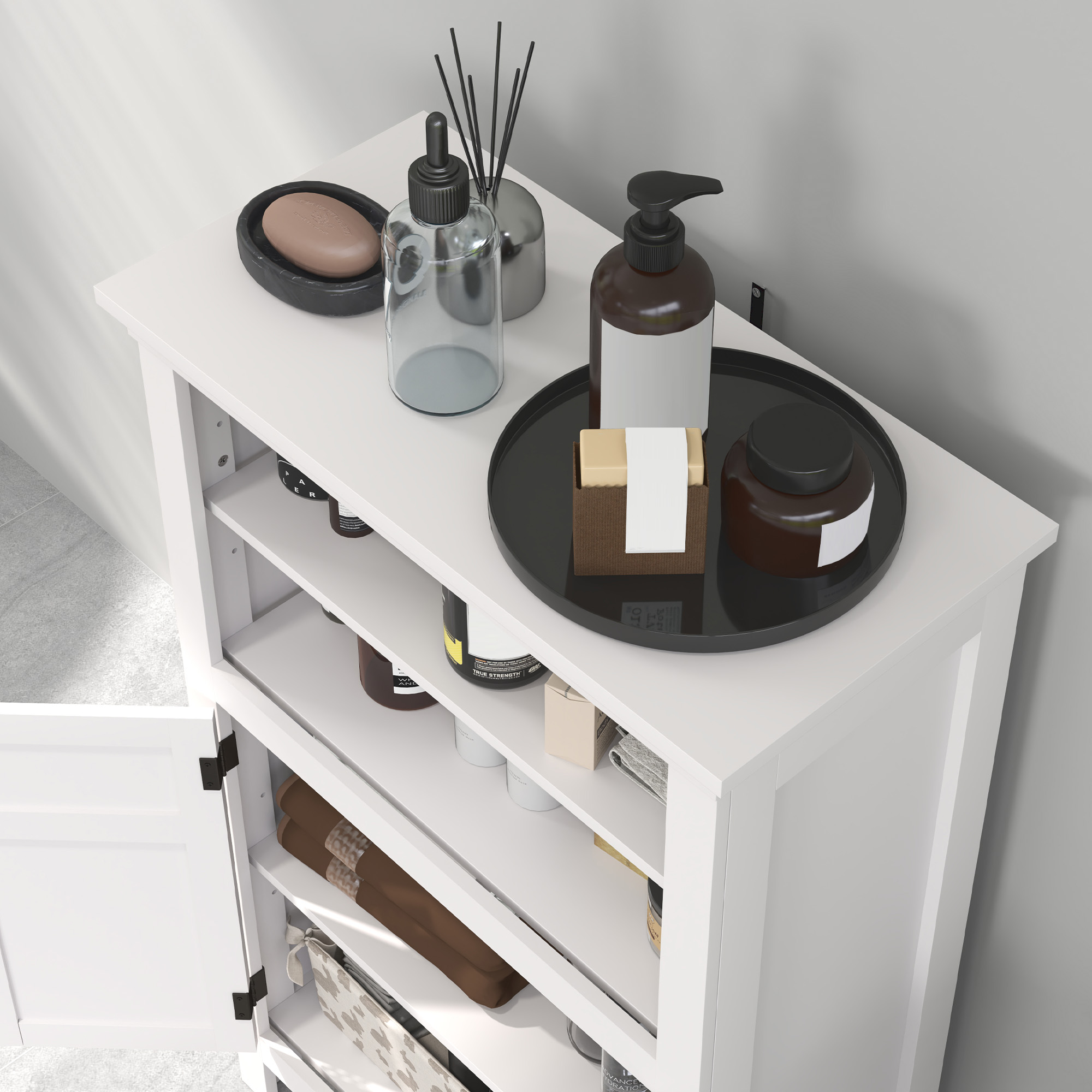 Even small spaces need an extra helping hand, so give yours plenty with this freestanding cabinet. Formed from MDF, this small bathroom storage cabinet is a solid piece suitable for everyday use. Comes with two top shelves and a bottom cupboard - enough room for all the essentials; complete with adjustable shelves for more personalised storage. The anti-tipping straps to attach to the wall for safety.