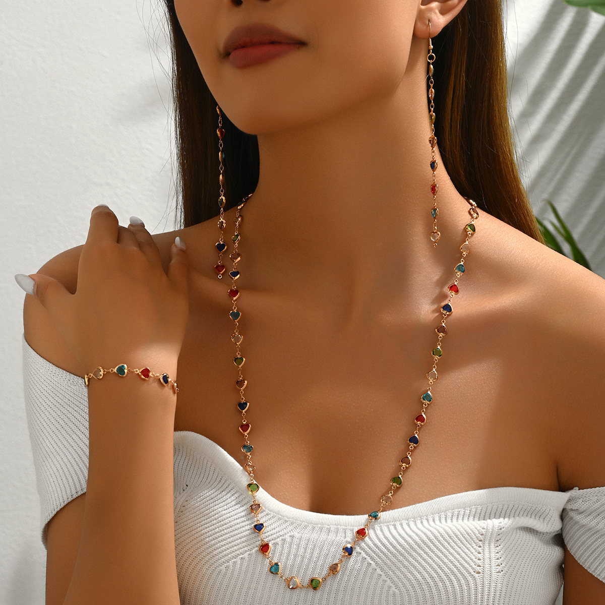 Color: Long necklace gold, long necklace silver, light pink, color, light green, platinum, long necklace bracelet gold, long necklace silver, Y necklace gold, short necklace bracelet gold, short necklace bracelet silver, red, SU096 light pink, SU096 color, SU096 light green, square Y necklace, drop Y necklace, round Y necklace