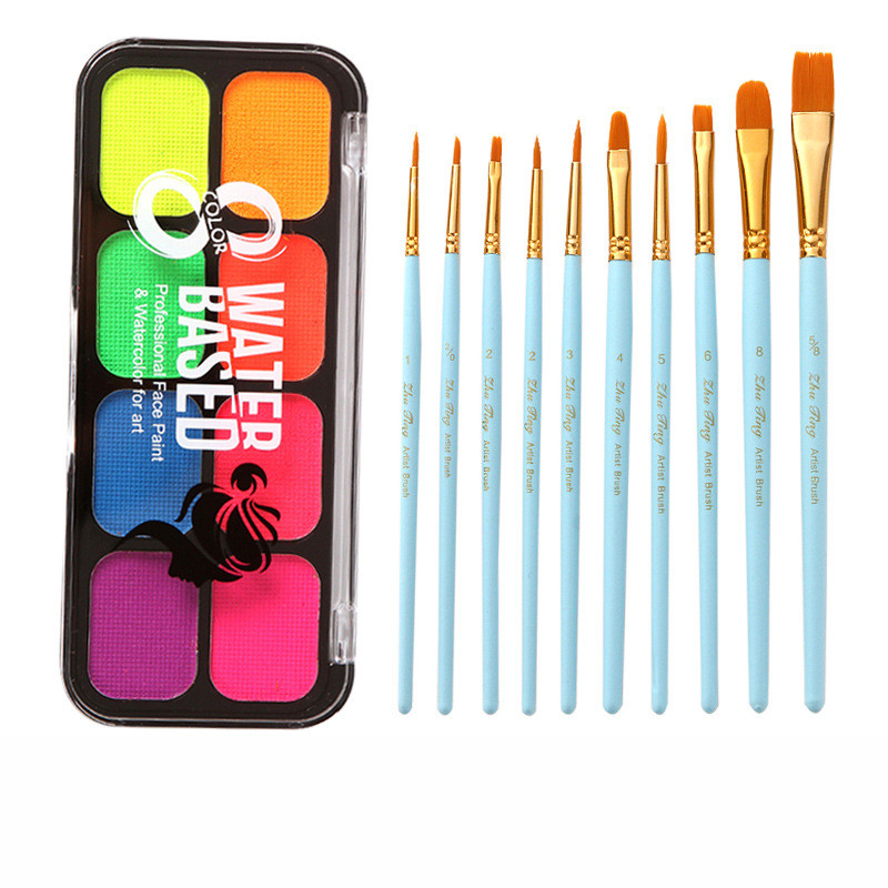 Color: 8-color fluorescent painted square box +10 matte green brushes, 8-color fluorescent painted square box +10 matte pink brushes, 8-color fluorescent painted square box +10 matte blue brushes