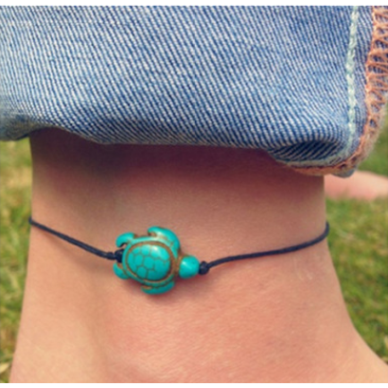 Multicolor Turtle Pendant Anklet Wholesale Europe and America Spring New Animal Turquoise Pendant Turtle Lady Anklet