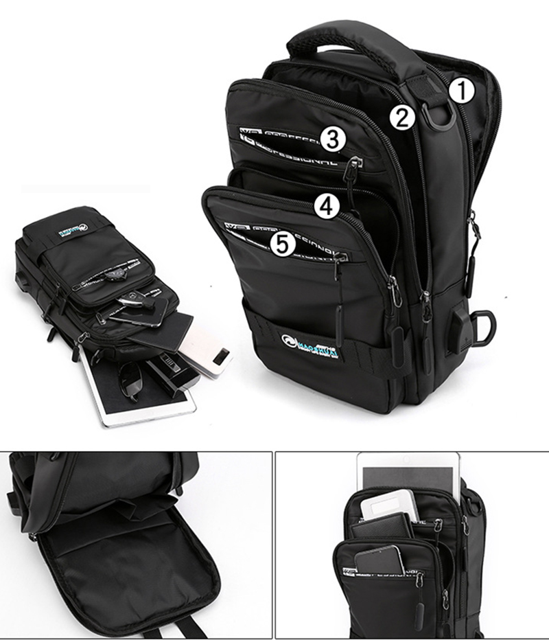 Internal structure of the bag: zipper pocket, mobile phone pocket, document pocket, computer pocket