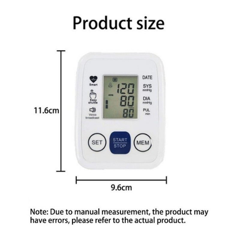 This upper arm blood pressure monitor provides comprehensive home health monitoring. Its large display shows clear and ensures accurate readings. The adjustable cuff fits a variety of arm circumferences. It can store 99 sets of data for two people, including time and date, for easy comparison of health conditions. Large buttons and a large display with clear letters and symbols make operation more convenient. White backlight ensures clear readings at night, and color indicators quickly show that blood pressure is too high or too low.