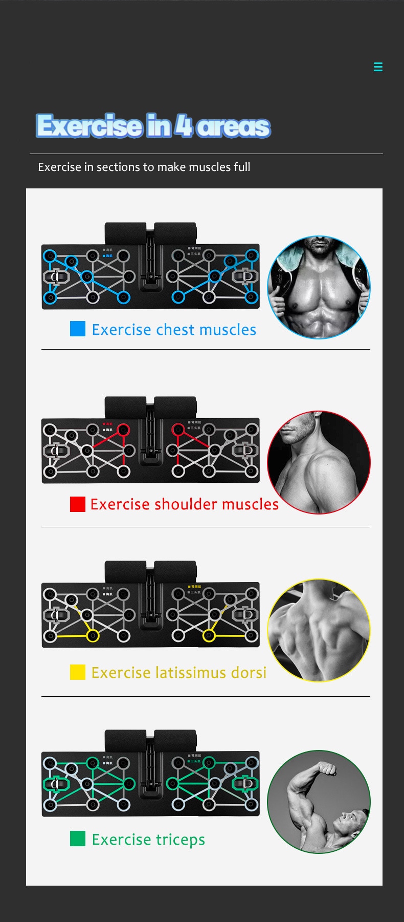 Product function: innovative folding, stable load-bearing, convenient storage, multiple training, regional exercise