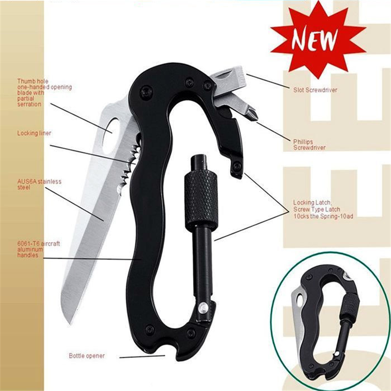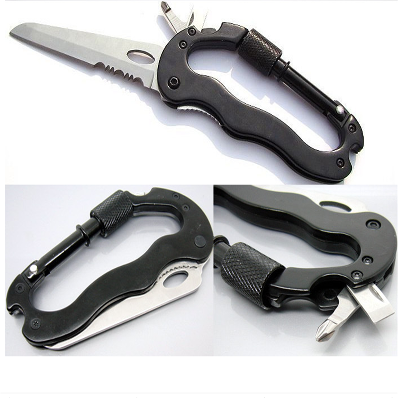 Product features: Multifunctional, can be used as a quick-hanging buckle, or as a Phillips screwdriver/slotted screwdriver/saw. Fashionable, practical, compact and exquisite, suitable for home and field. Multifunctional, professionally integrates the functions of a knife, saw and mountaineering, easy to carry, suitable for various camping and mountaineering activities.