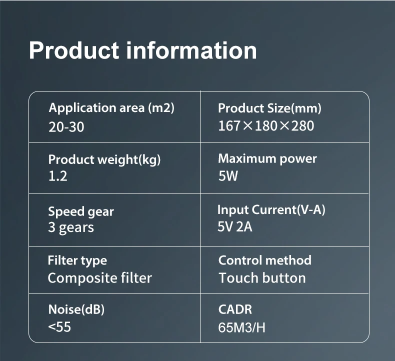 CADR value: 65m³/H