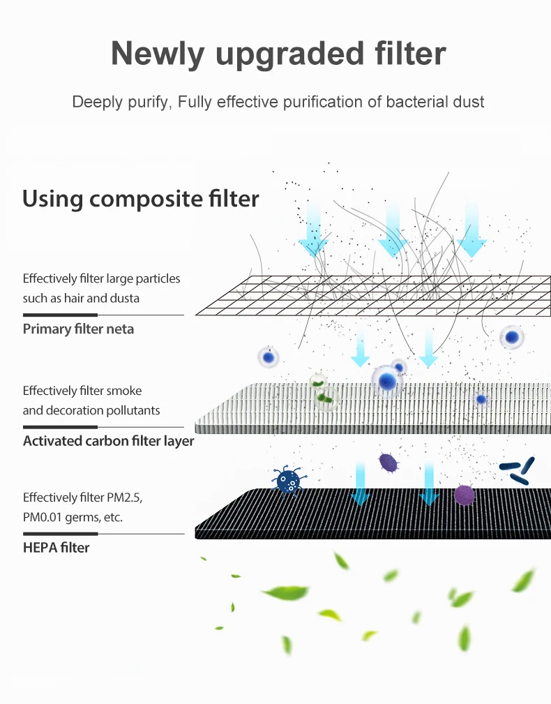 Composite filter: Primary filter+H13 Hepa+Activated carbon cotton+Photocatalyst