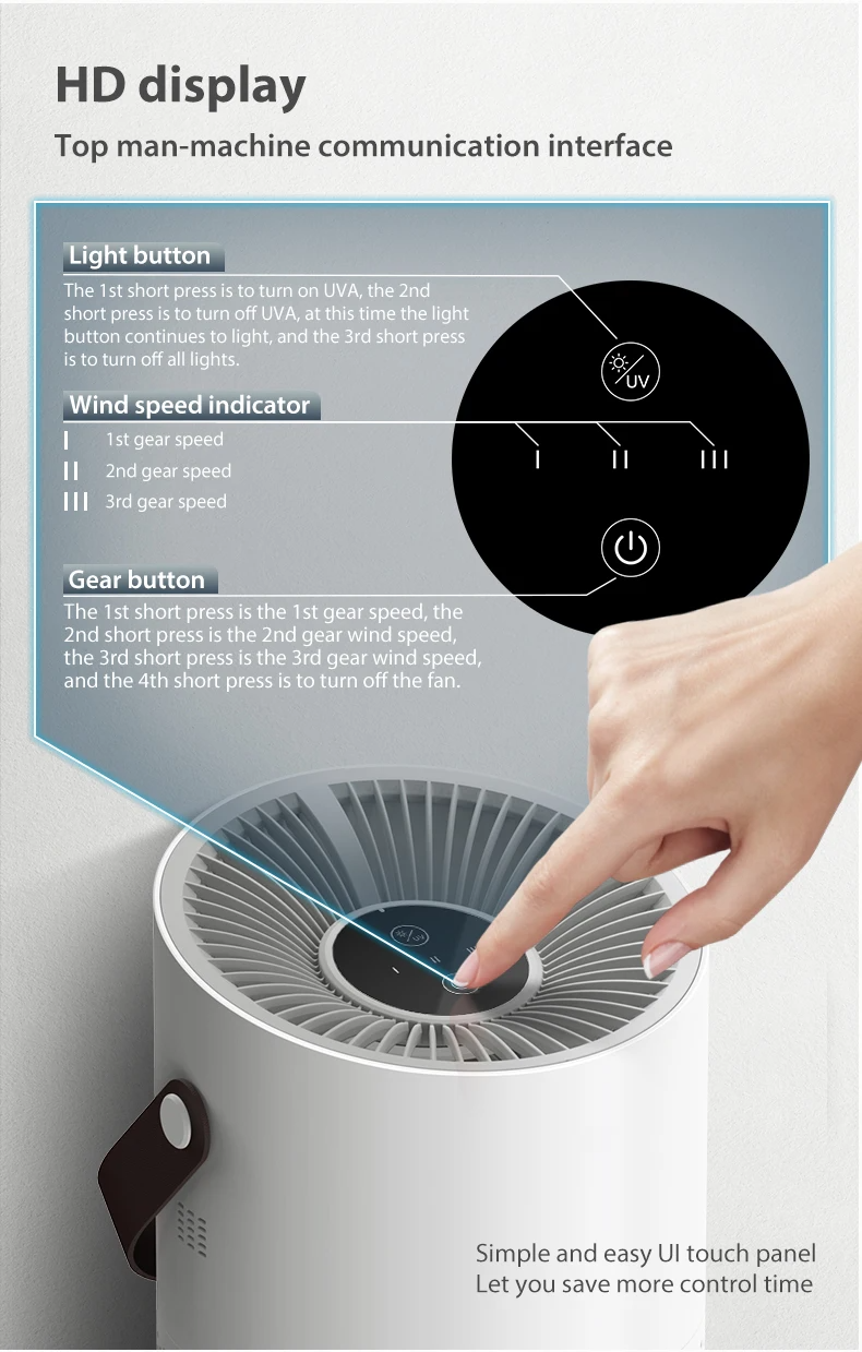 4. Small Portable Smart Air Purifier - Small size with a leather handle, easy to carry, the air purifier can be placed on the desktop or bed.