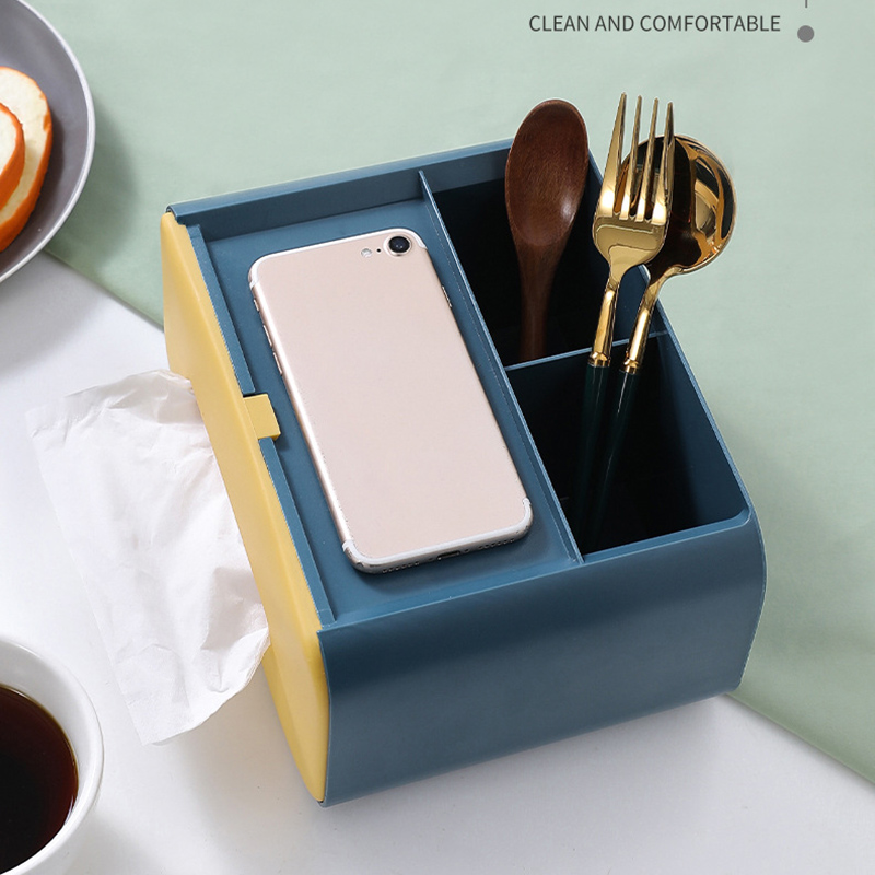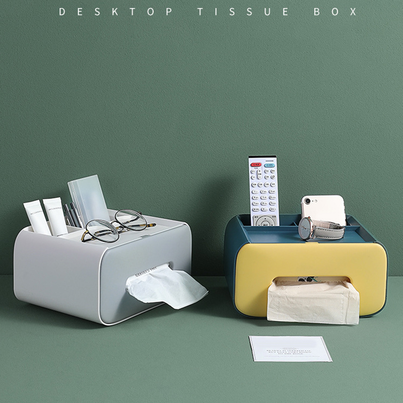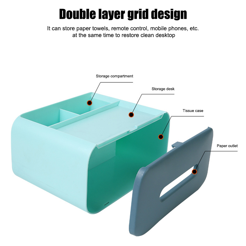 1. Multifunctional, the top is for storage, the bottom is for tissue. Easy to store, save desktop space and not messy.