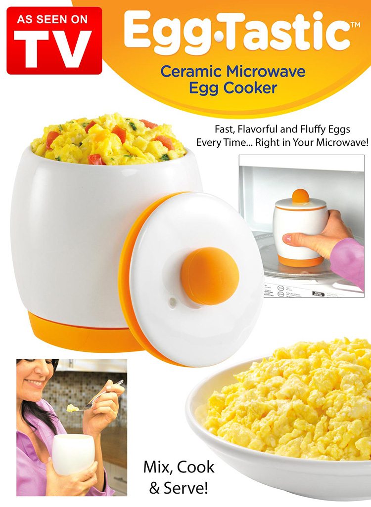 The egg-Tastic microwave cooker and poacher instantly heats and keeps eggs at the perfect cooking temperature