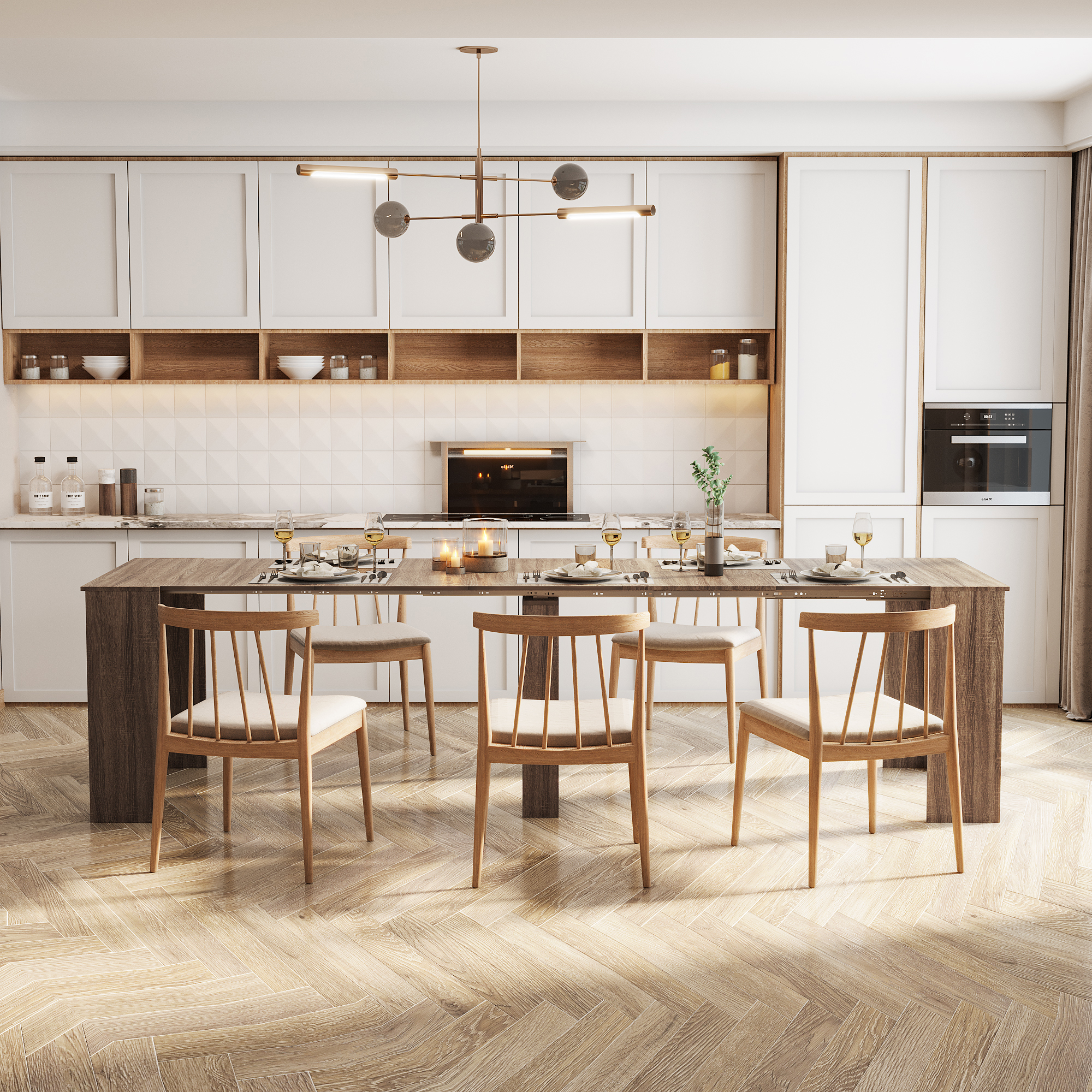 Extendable console table up to 118.50in. Elegant console made of chipboard and MDF, durable wood types without natural defects thanks to great workmanship in the production phase The extensions simply slot into the convenient extension holder of the console to save unnecessary space - this mechanism makes them essential for your home and can be used as a simple desk or as a large dining table The simple lines of this product allow it to be placed in any type of environment, from the most classic to the most modern - ideal for those looking for a spacious yet comfortable table - assembly is quick and easy If you want to use it outdoors,you need to pay attention to the following points:1.Do not be exposed to the sun,use it in a cool place, and then put it away2.Do not see rain,moisture will make the sheet foam