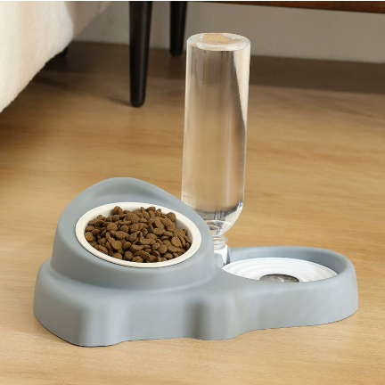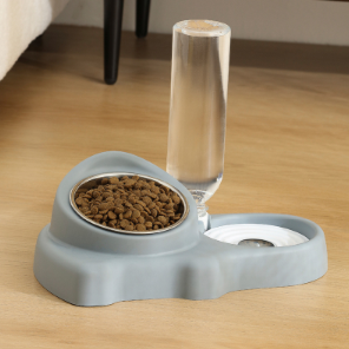 Multifunctional feeding bowl-feeder + stainless steel bowl-premium gray-1 set