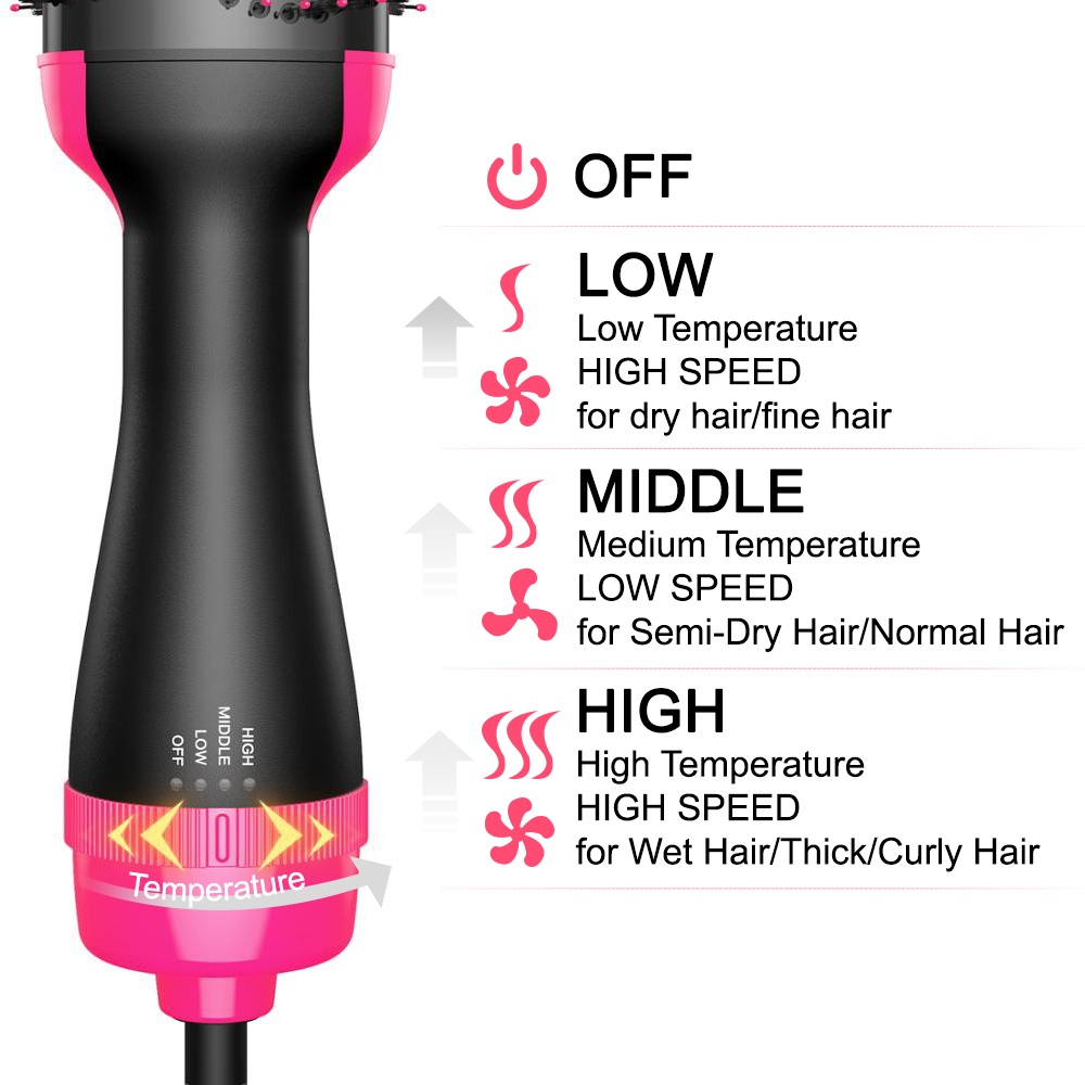 1)4 in 1 Multifunctional Hair Dryer Brush: One set combines of hair comb, hair dryer, hair curler, straightener. Perfect hair styling tool for all hair types (Wet and dry use).
