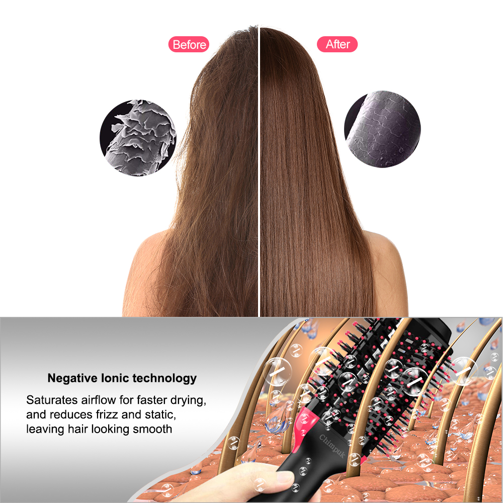 3)Negative Ion Technology: one step hair dryer and styler volumizer with negative ions saturating the air flow and ceramic coated brush head.The hair dryer and straightener helps to improve your hair condition and nourish damaged hair, makes your hair shiny and smooth while reducing static.