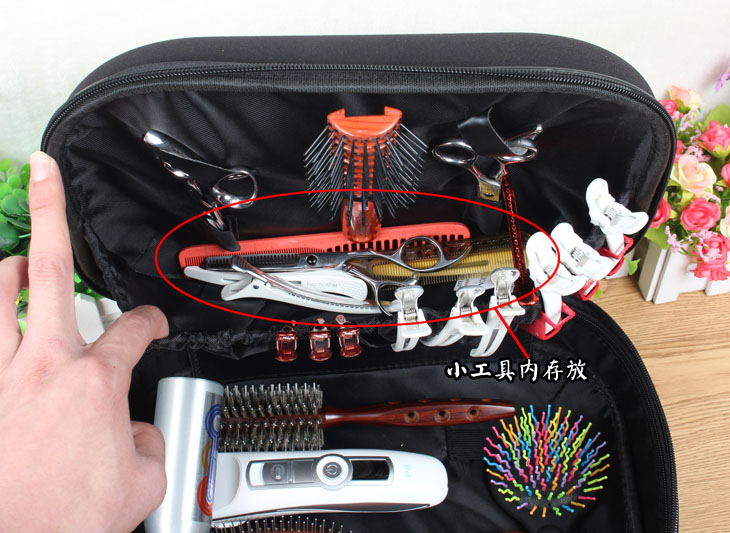 Capacity: Hair dryer, scissors, clip, electric clippers, roller comb, watering can, hair spray, etc.