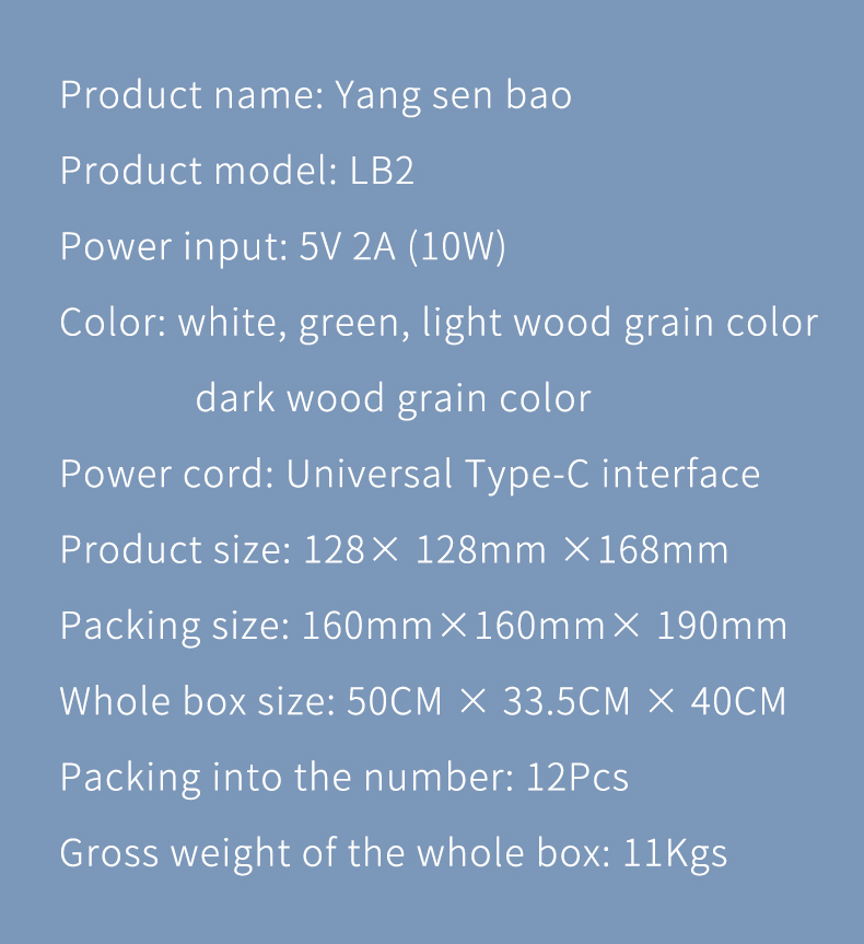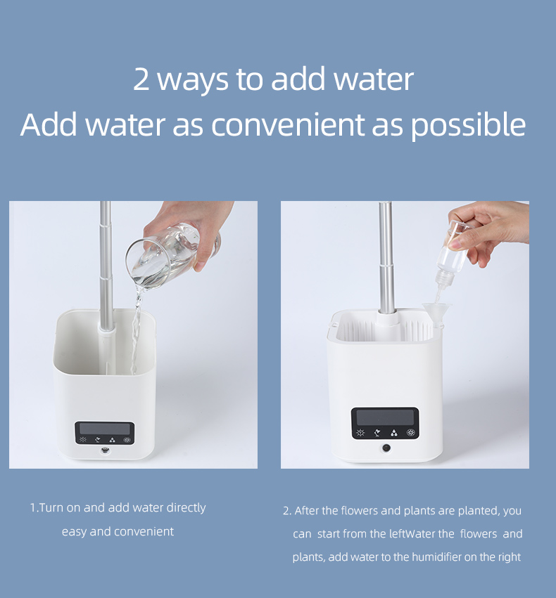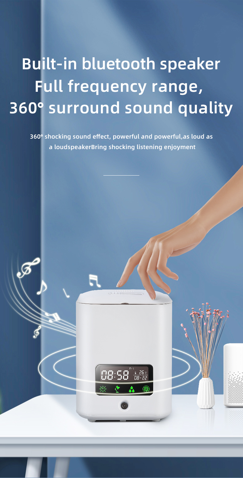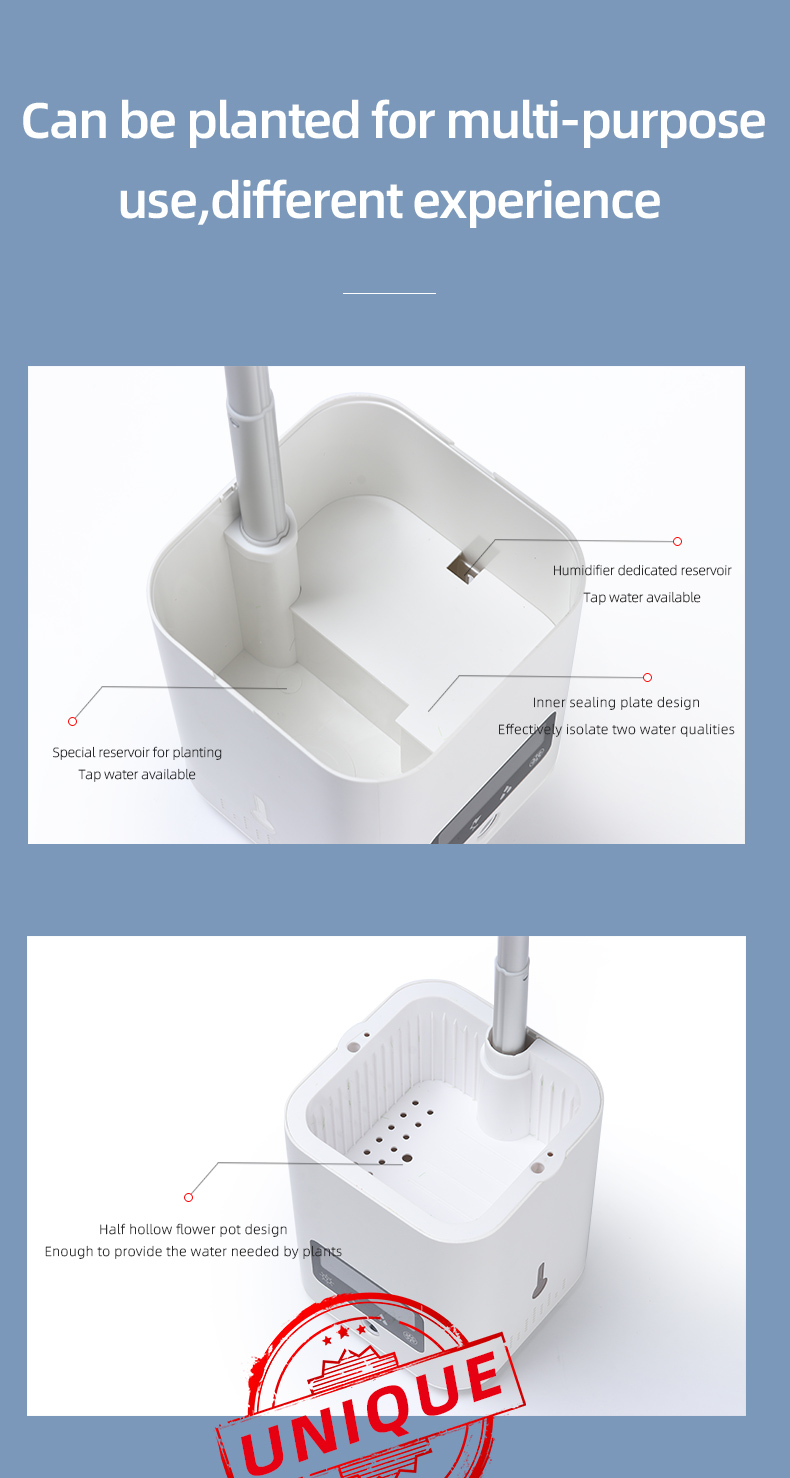 Configuration 2:5 in 1 function: ① humidifier ② air purification ③ Perpetual Calendar screen display ④ eye protection table lamp ⑤ DYI flowerpot