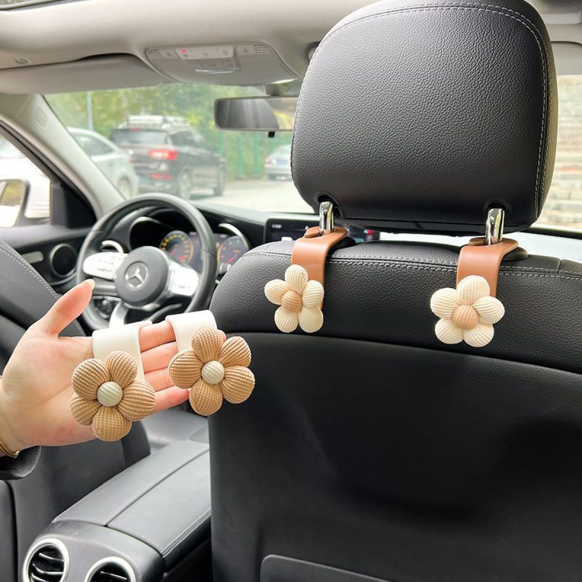 Color: Single-Xuan Ya flower (white) car car seat hook, single-Xuan Ya flower (Brown) car car seat hook, one pair-Xuan Ya flower (white) car car seat hook, one pair-Xuan Ya flower (Brown) car Car seat hook, mixed 4-Xuan Ya flower (Brown) car car seat hook, mixed 4-Xuan Ya flower (white) car seat