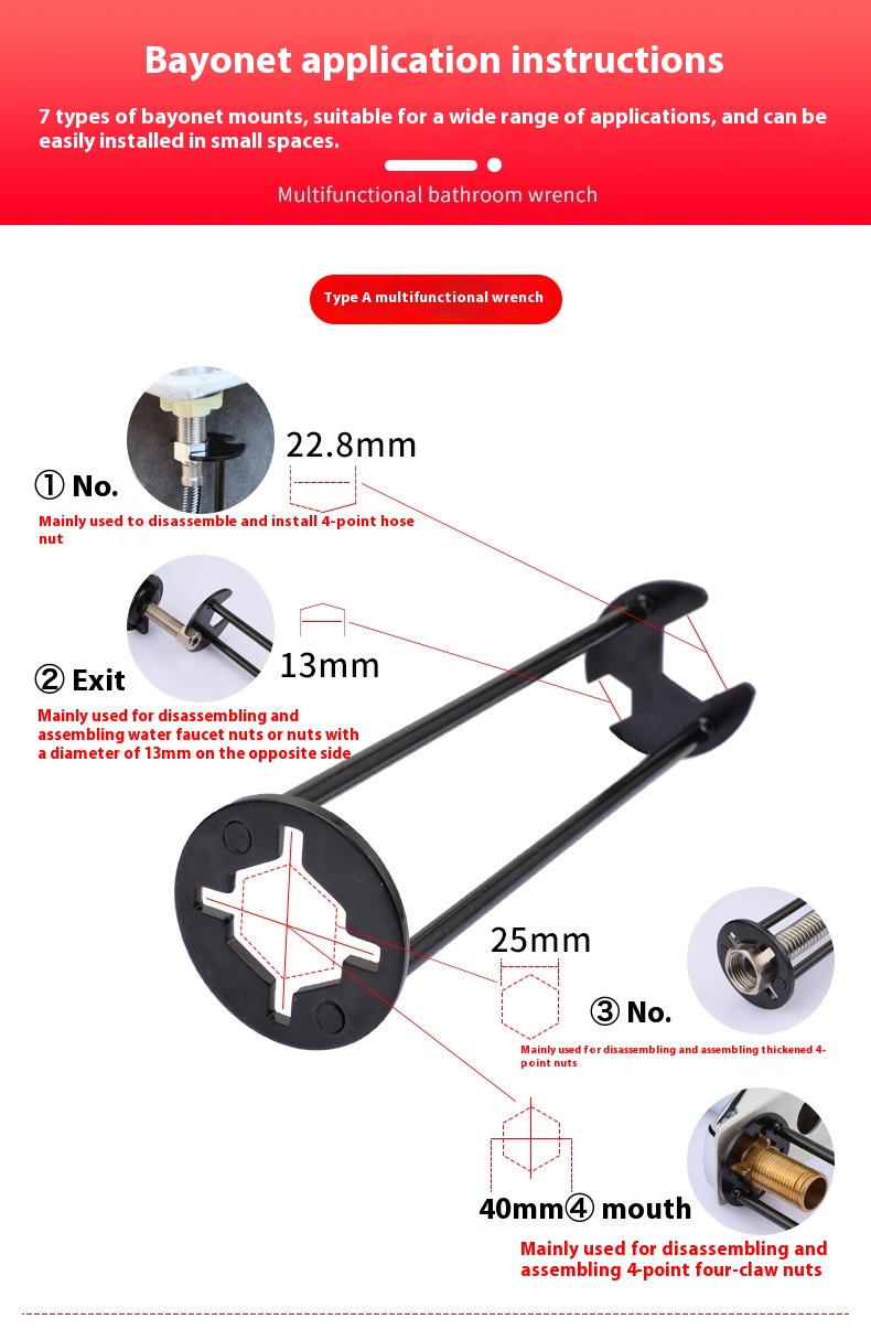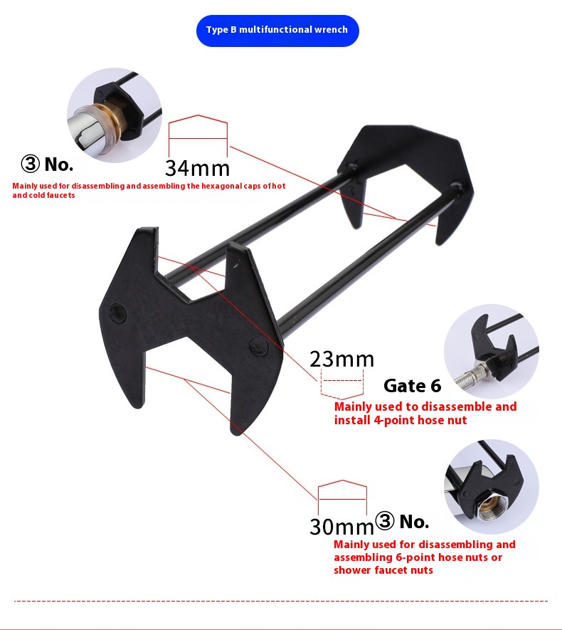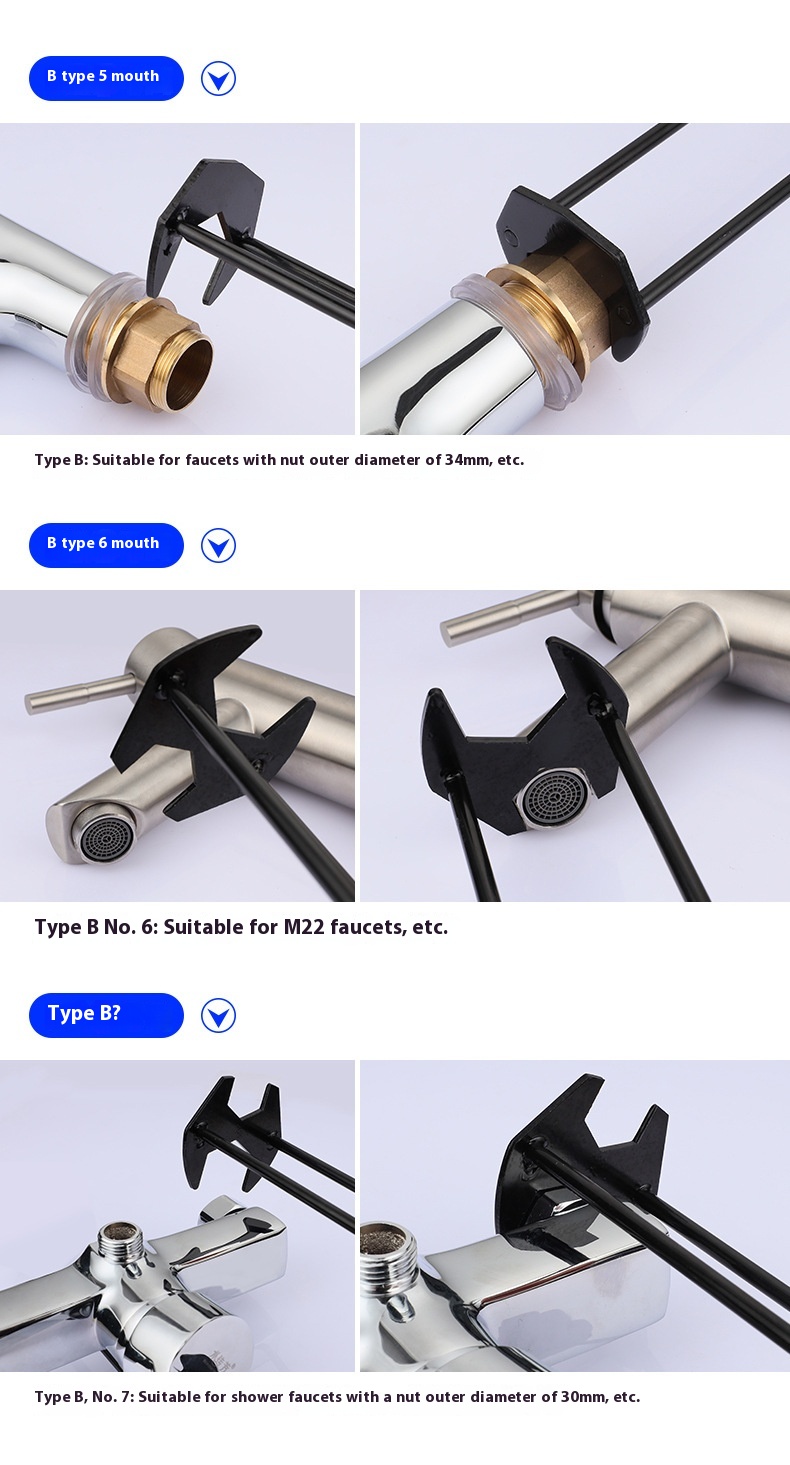 Specifications: A kitchen wrench, B kitchen wrench, A B kitchen wrench, upgraded thickened and widened [yellow 6 bayonet] kitchen wrench, upgraded thickened and widened [Yellow 5 bayonet] kitchen and bathroom wrench, upgraded thickened and widened [Black 6 bayonet] kitchen and bathroom wrench, upgraded thickened and widened [Black 5 bayonet] kitchen and bathroom wrench