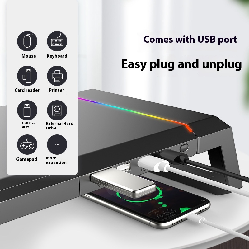 Color: 01 Black Standard Edition (no light),02 black monitor stand [2.0 extension],02 White monitor stand [2.0 extension] color, 03 Black Standard Edition [thickened alloy panel]],04 black upgraded version [one 3.0 three port 2.0],04 White upgraded version [one 3.0 three port 2.0],04 pink upgraded version [one 3.0 three port 2.0], 05 alloy display bracket [Fast Charge version]]★RGB luminous]]