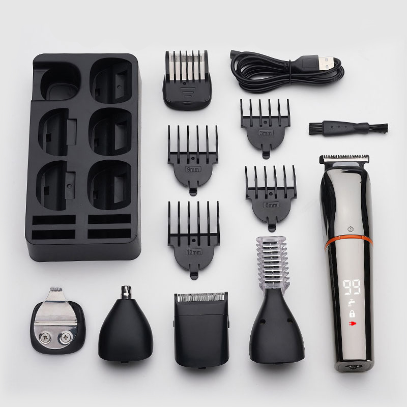 Main unit, limit comb (3, 6, 9, 12mm), barber knife, oil head knife and carving knife