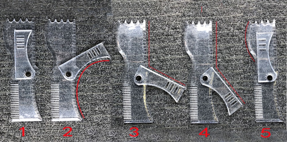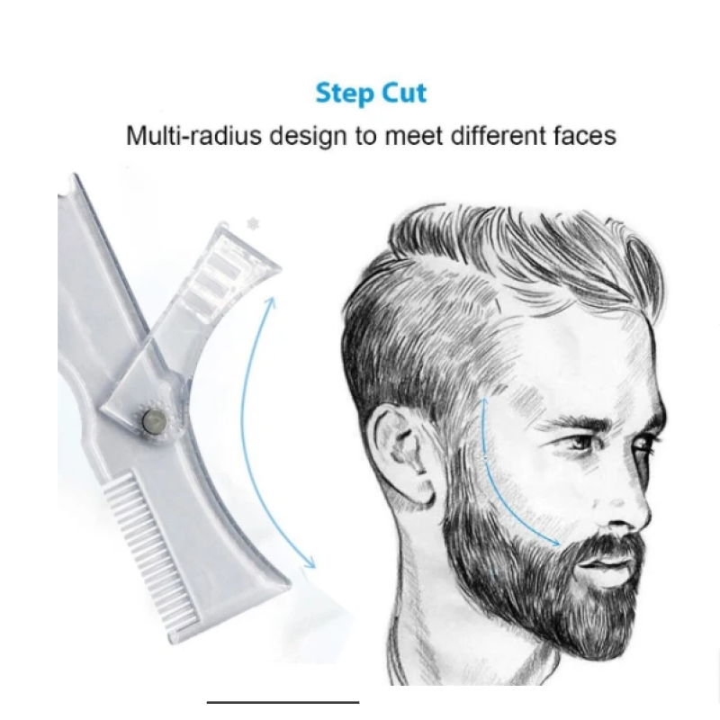 Beard templates can help users create a wide variety of looks and styles, including curve cutting, step cutting, and straight cutting. Goatee horns, beards, etc. An ergonomically designed indicator with strong gripping force and symmetry can easily obtain symmetry when shaping the cheek line, neck line, jawline and hairline.