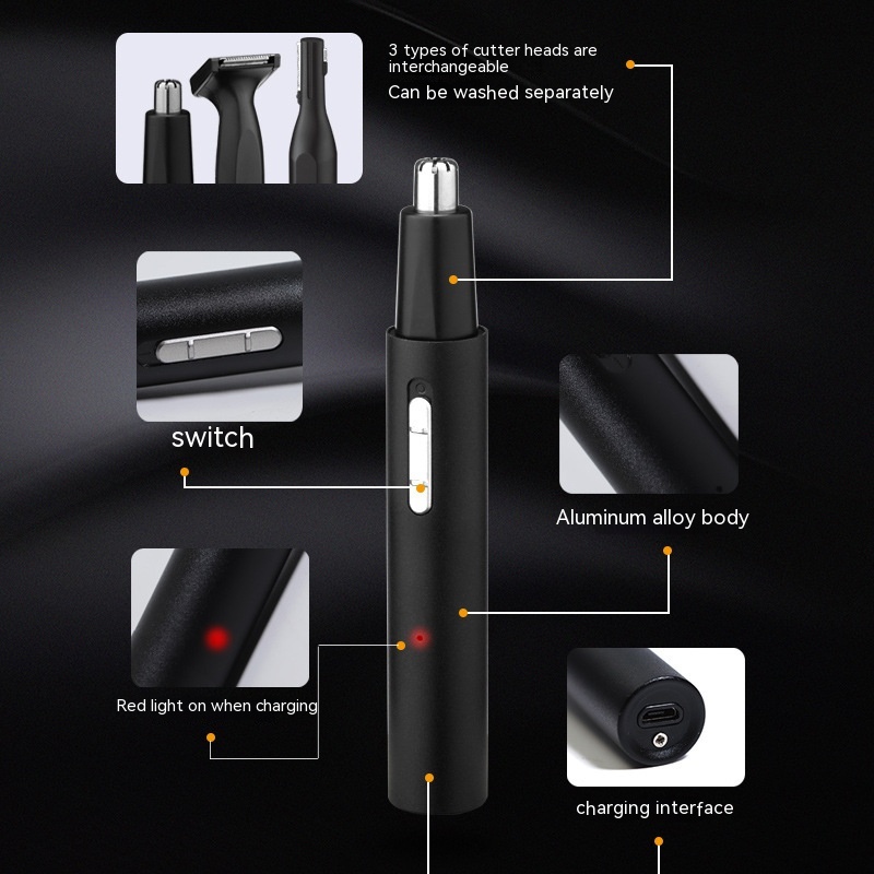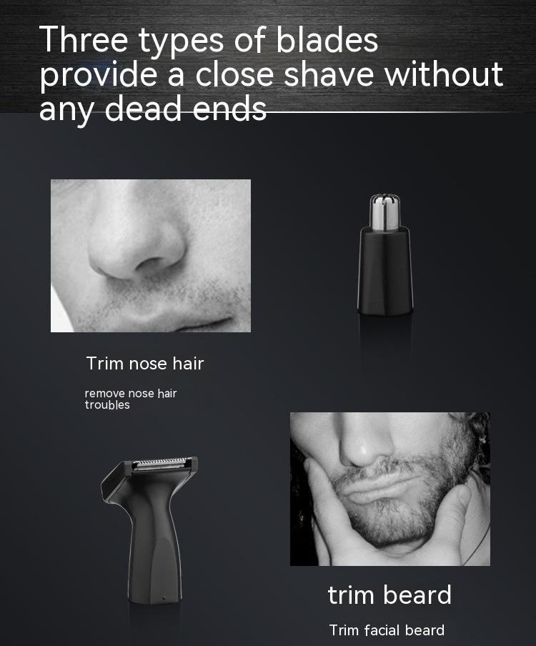 Multifunctional Men's Cleaning Suit Pogonotomy Nose Hair Trimming Eyebrow 3 In 1USB Charging