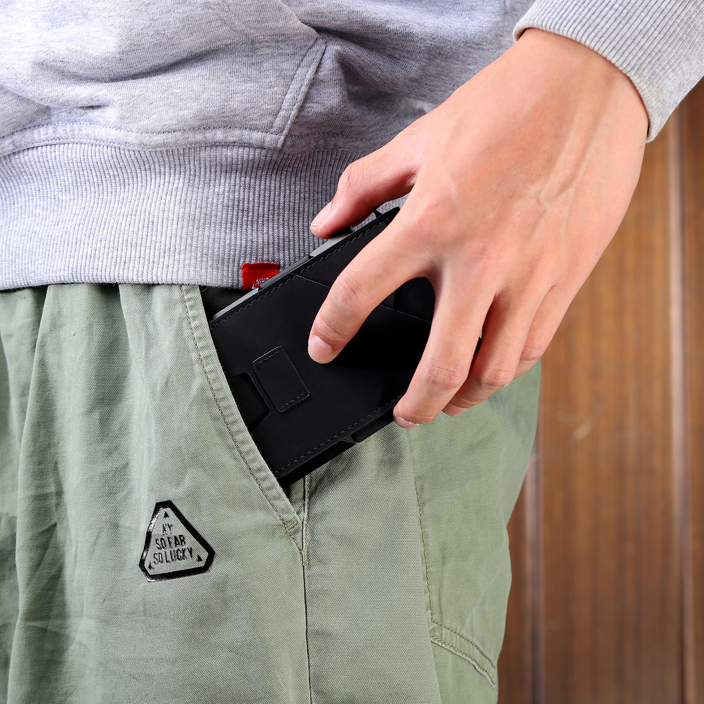 Internal structure: key position, photo position, bill holder, card position, change position, ID position