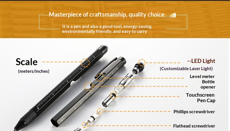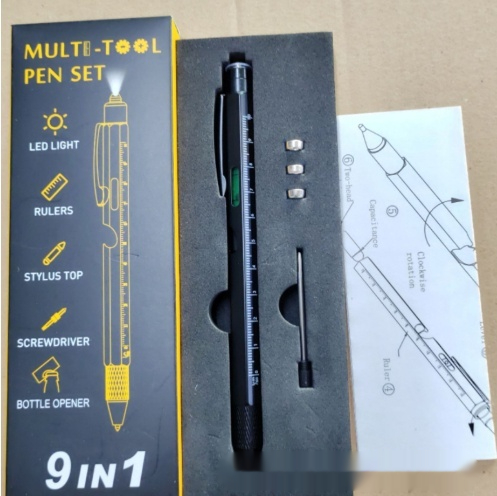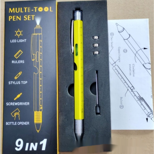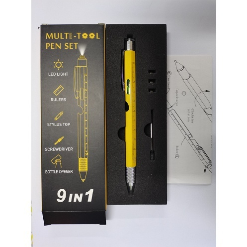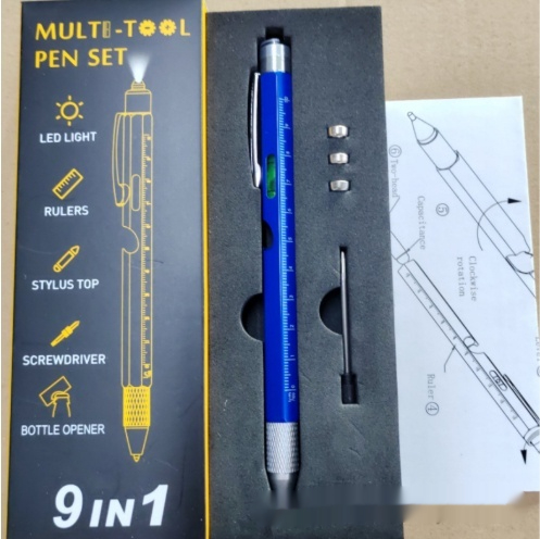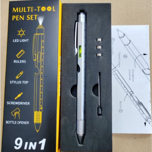 Cross border multifunctional tool pen: 9-in-1 metal ballpoint pen