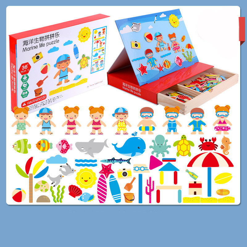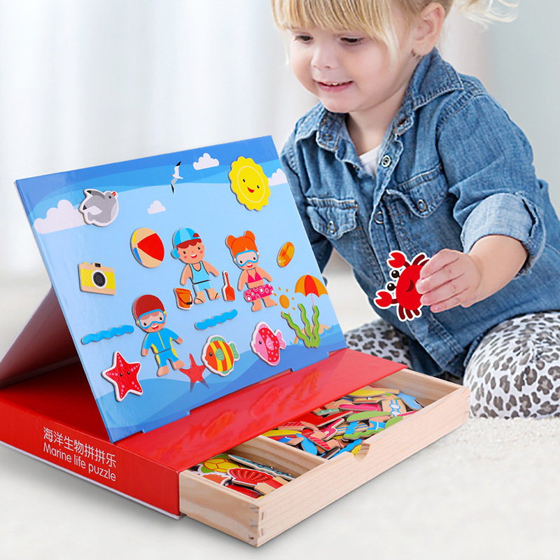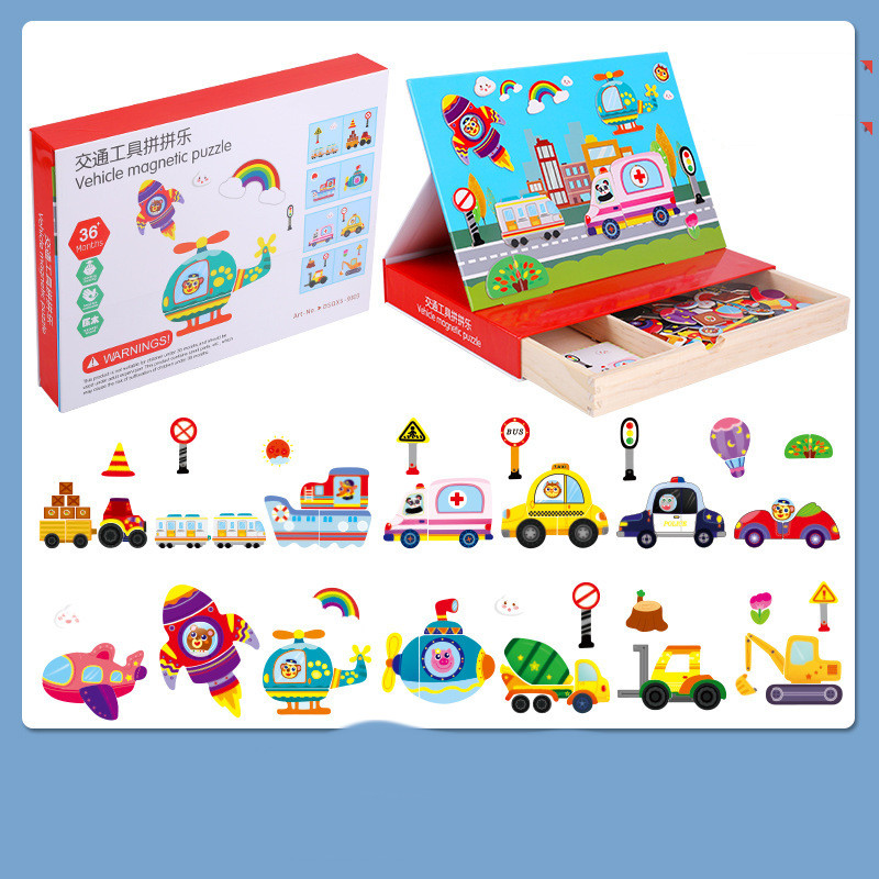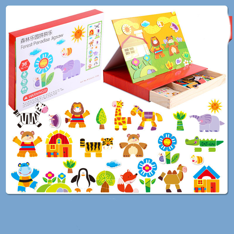 Multifunctional Puzzle Drawing Board Magnetic Sticker Toy Children Wooden