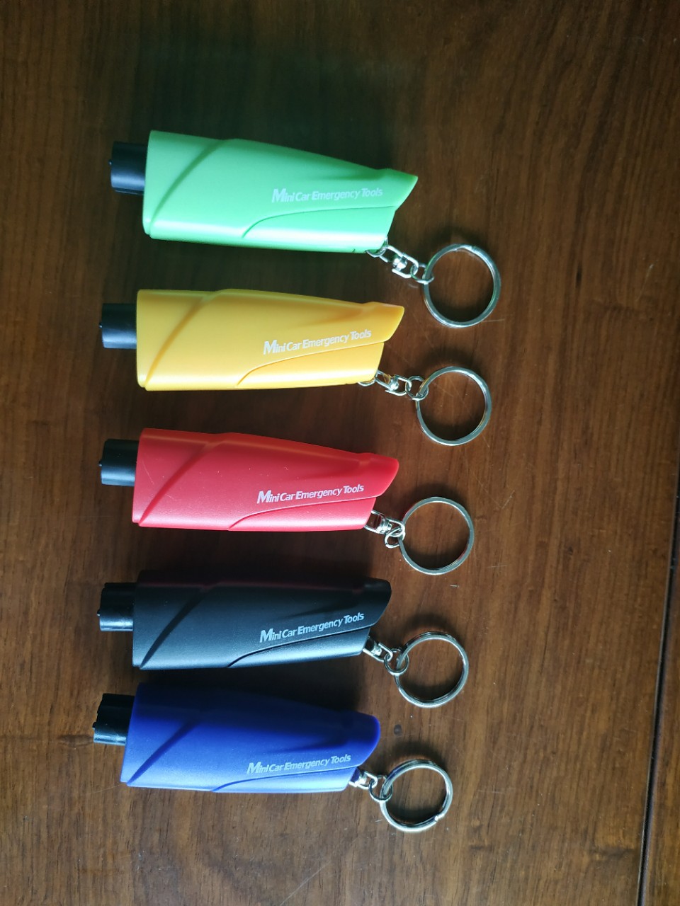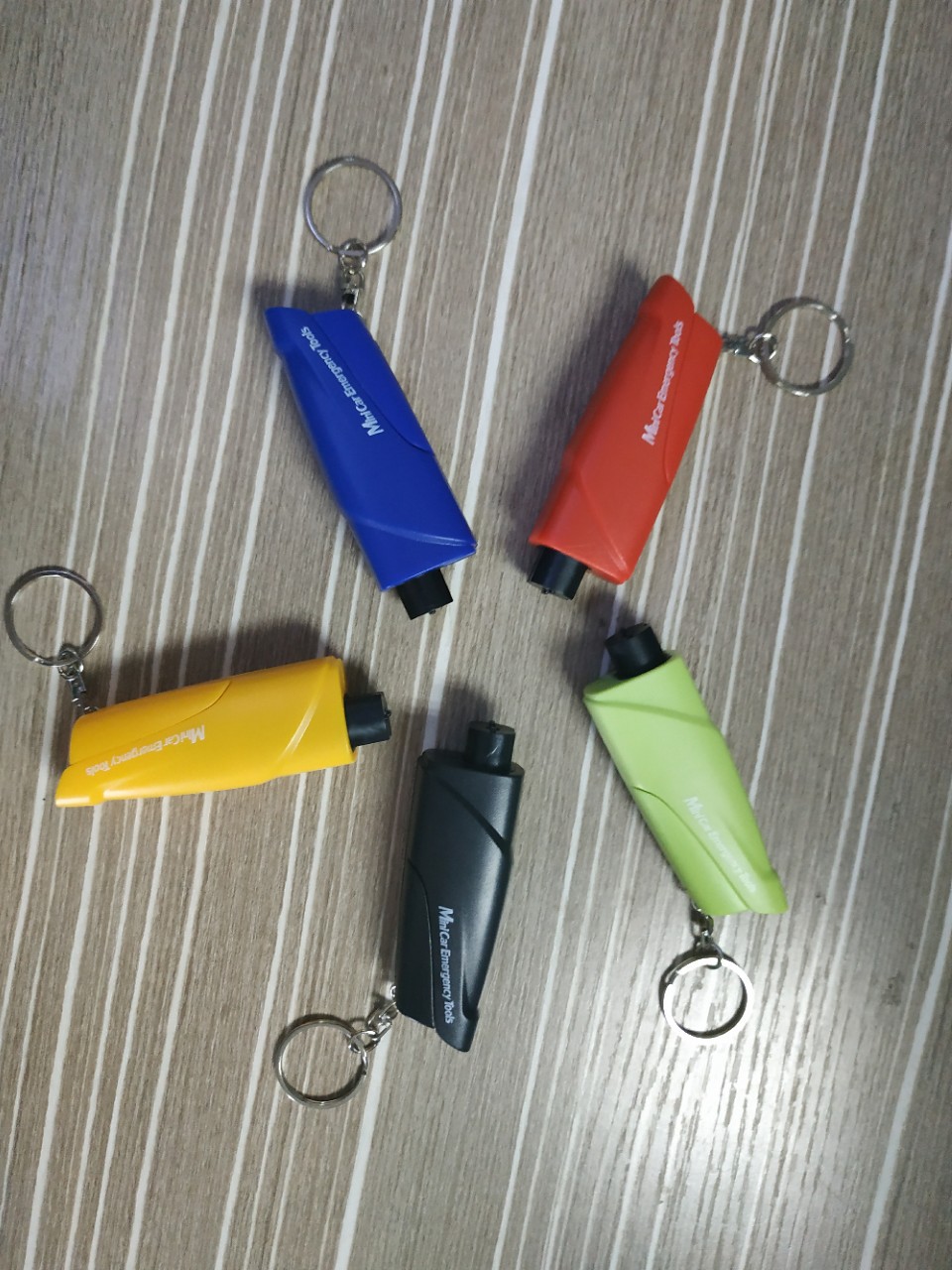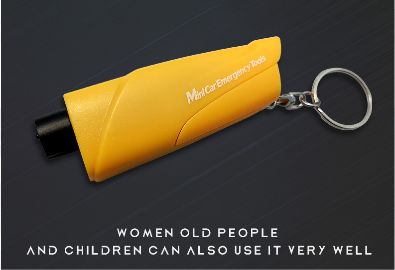 1. Cut the seat belt: pull out the escape device quickly from the key chain, then pull out the buckle, align the blade to the seat belt, cut it off quickly, and get out of the emergency.