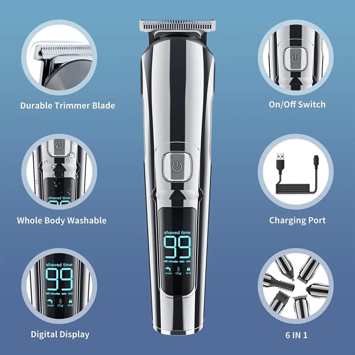 Product information:Power type: RechargeablePower: 5Applicable people: AdultsSpecification: USBCleaning method: washable blade