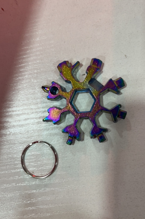 Diameter: 6.5cmThickness: 7.5mmMaterial: zinc alloyProcess: electroplatingPacking list:Snowflake screwdriver*1